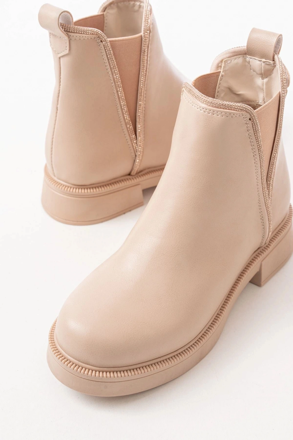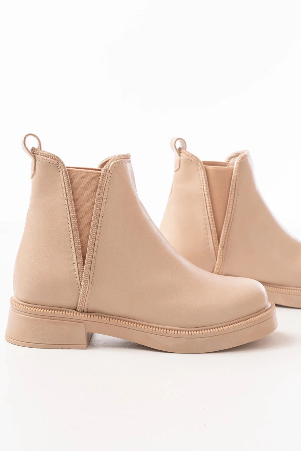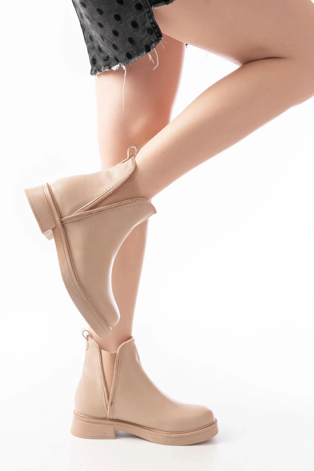 508-3038 Bej Toka Aksesuarlı Fermuarlı Günlük Kadın Bot