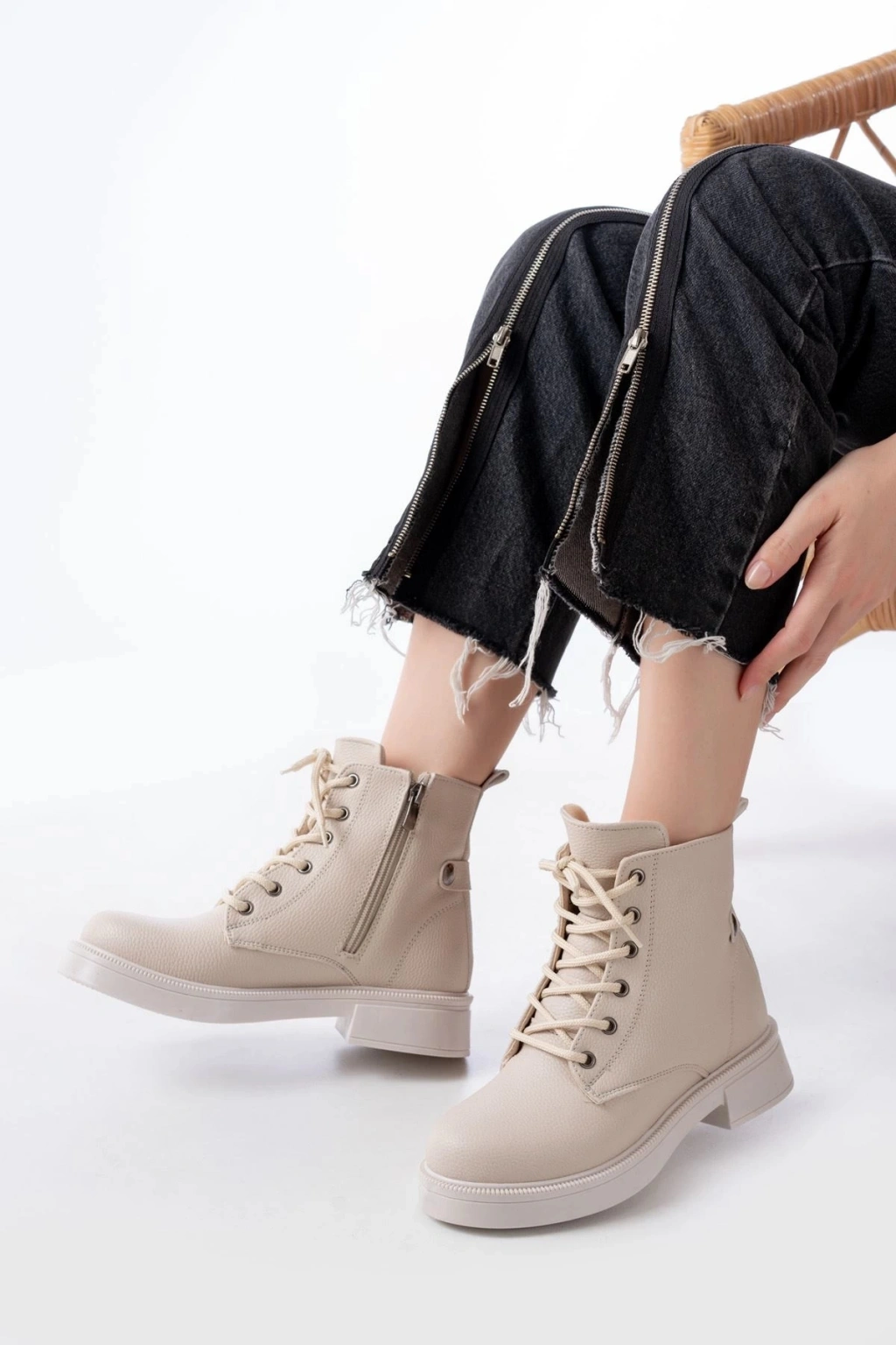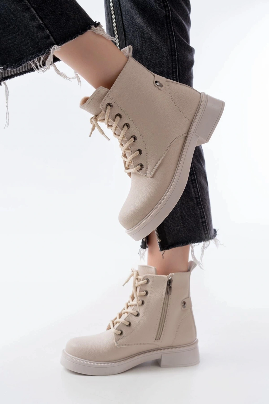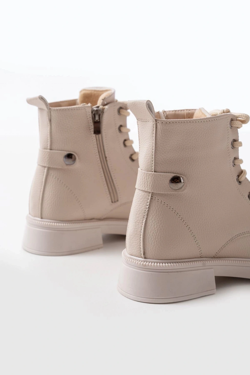02-2003 Bej Galata Bağcıklı Fermuarlı Günlük Kadın Bot