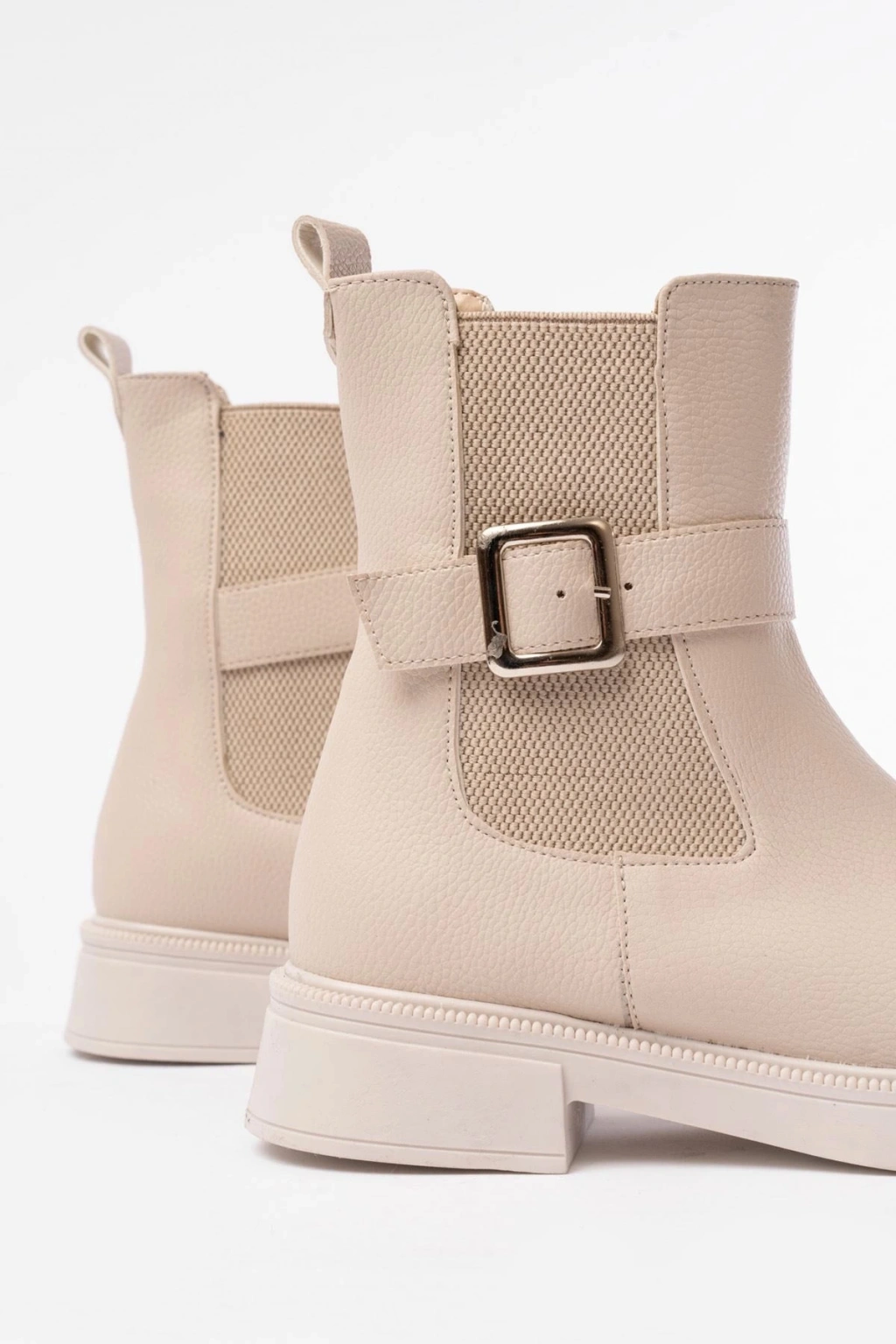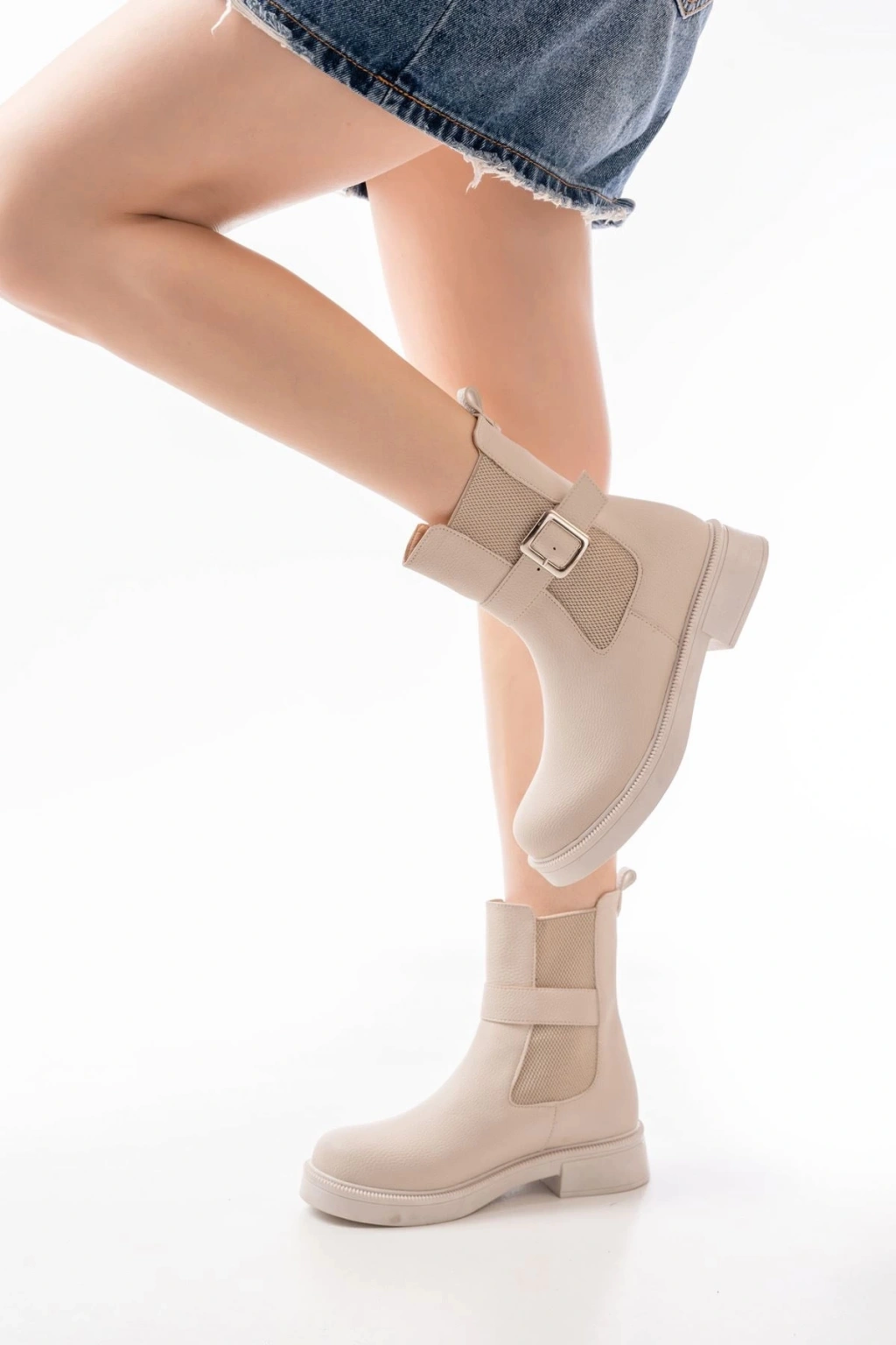 508-3038 Bej Toka Aksesuarlı Fermuarlı Günlük Kadın Bot