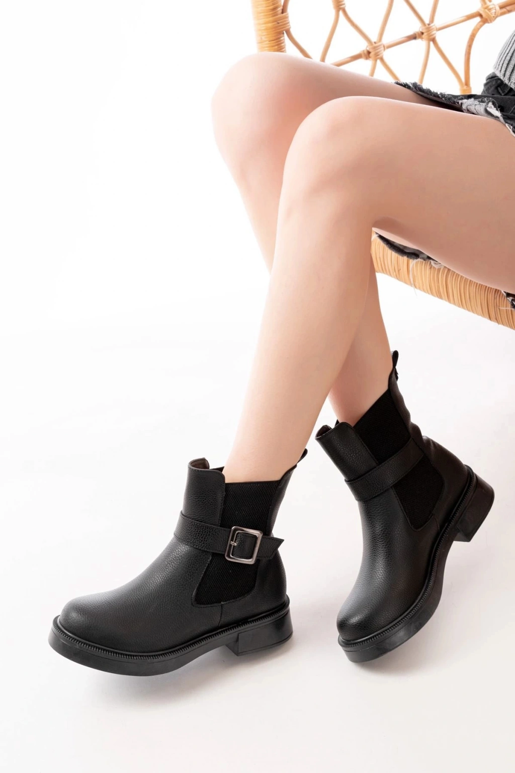 02-2004 Siyah Toka Aksesuarlı Lastikli Günlük Kadın Bot