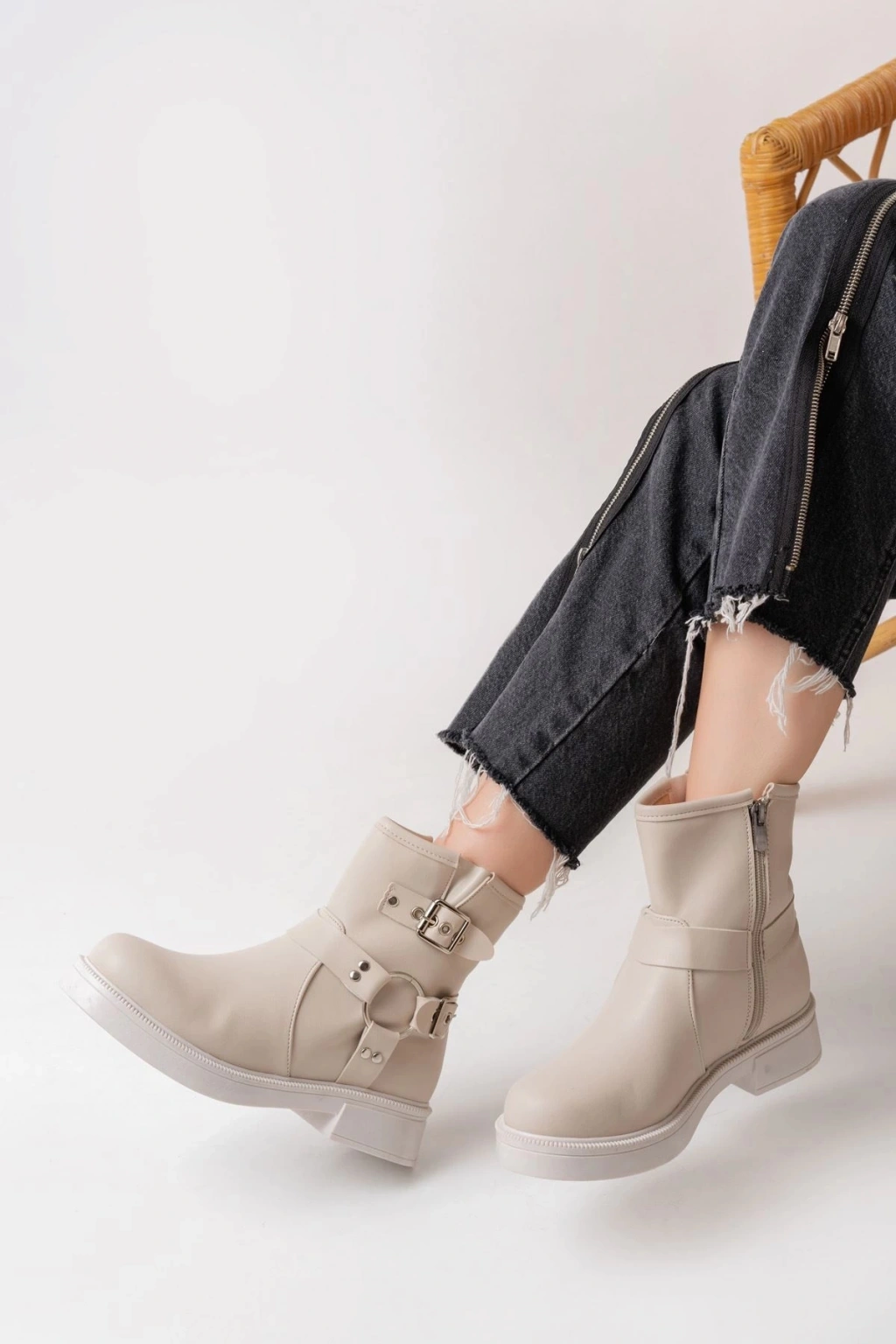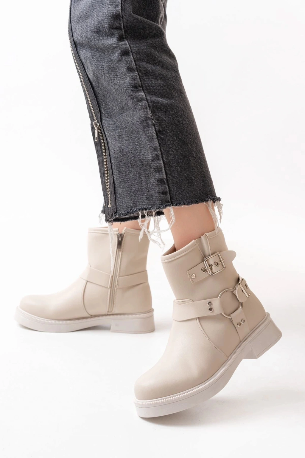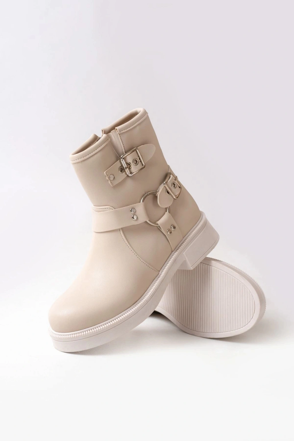 508-3038 Bej Toka Aksesuarlı Fermuarlı Günlük Kadın Bot