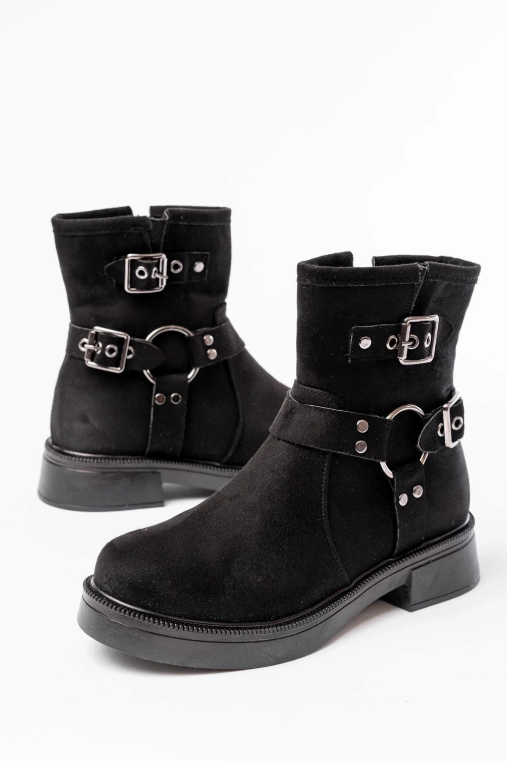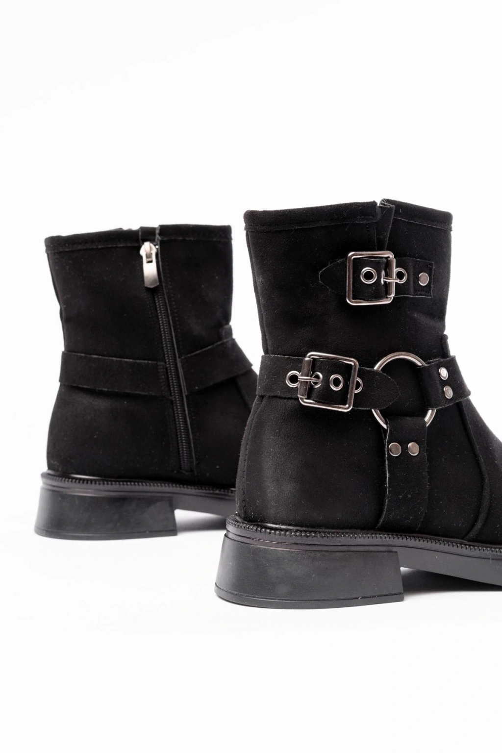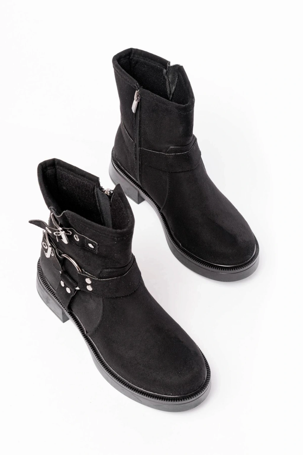 02-2013 Siyah Süet Toka Aksesuarlı Fermuarlı Günlük Kadın Bot