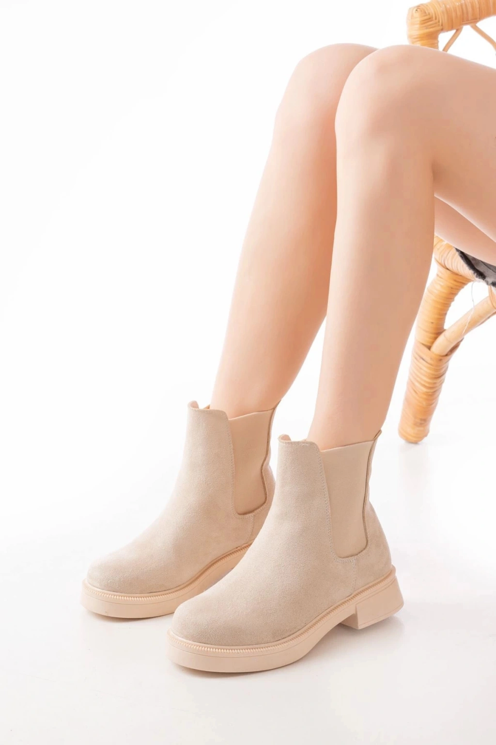 02-2137 Bej Süet Lastikli Günlük Kadın Bot