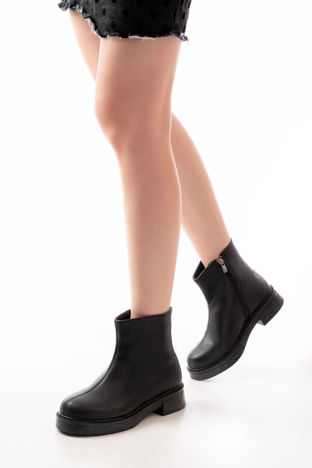 02-3033 Siyah Fermuarlı Günlük Kadın Bot
