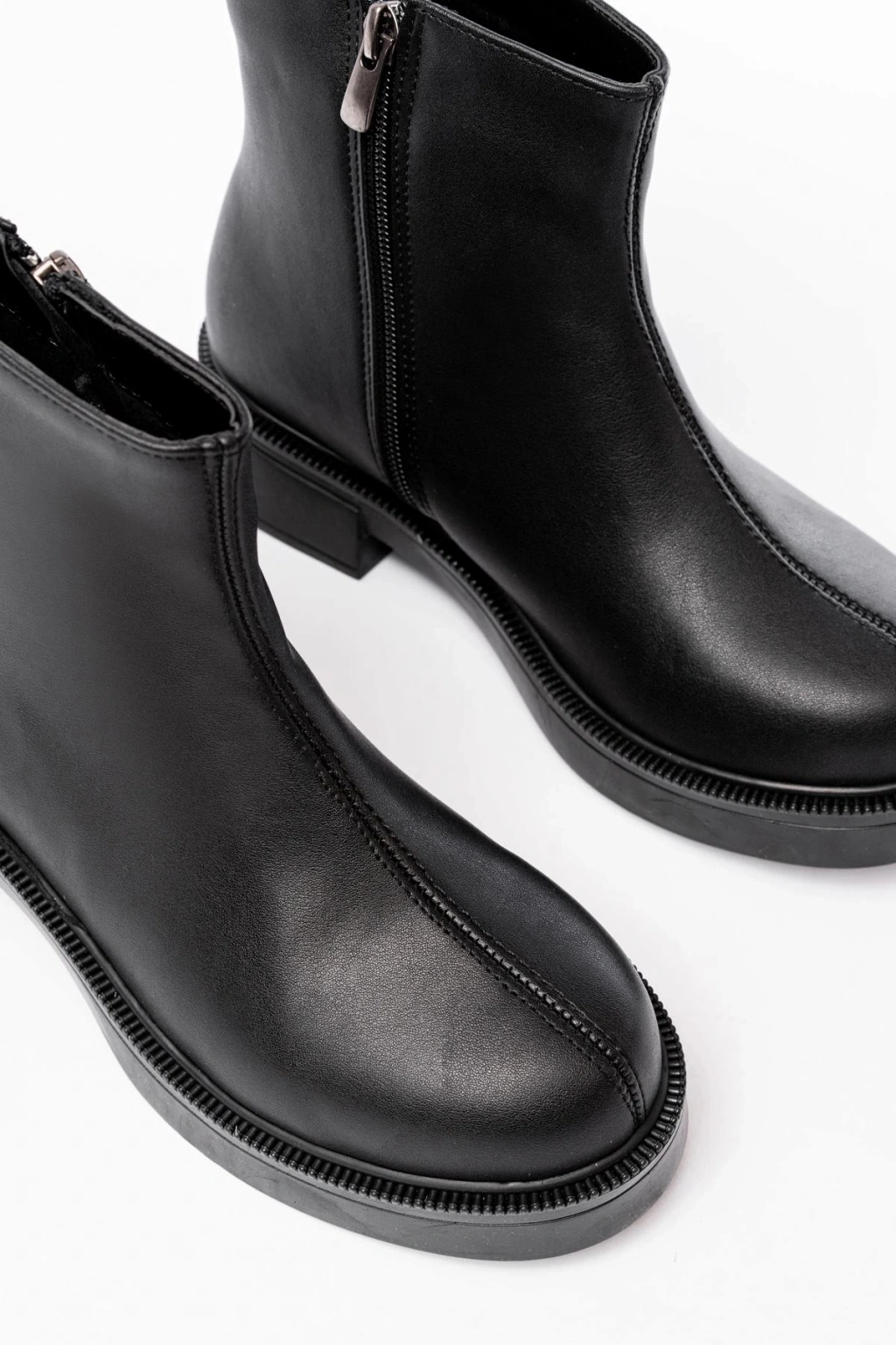 767-3020 Siyah Fermuarlı Kalın Topuklu Günlük Kadın Bot