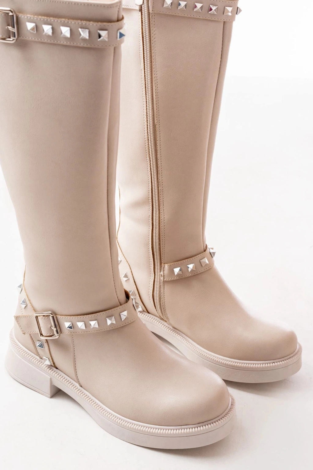 02-307 Bej Düz Topuklu Günlük Bayan Binici Çizme