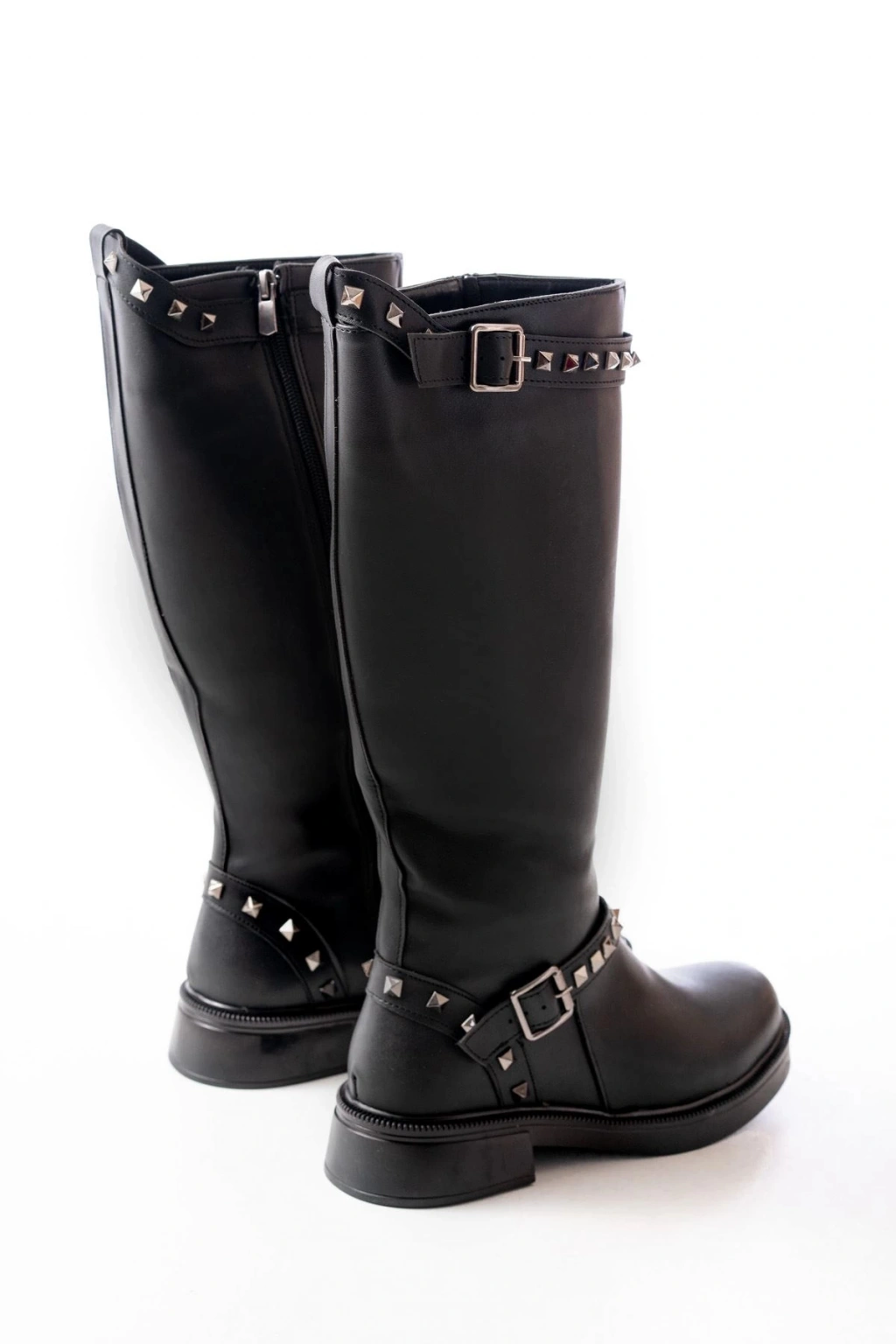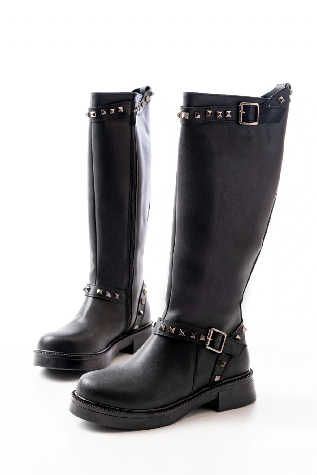 02-307 Siyah Düz Topuklu Günlük Bayan Binici Çizme