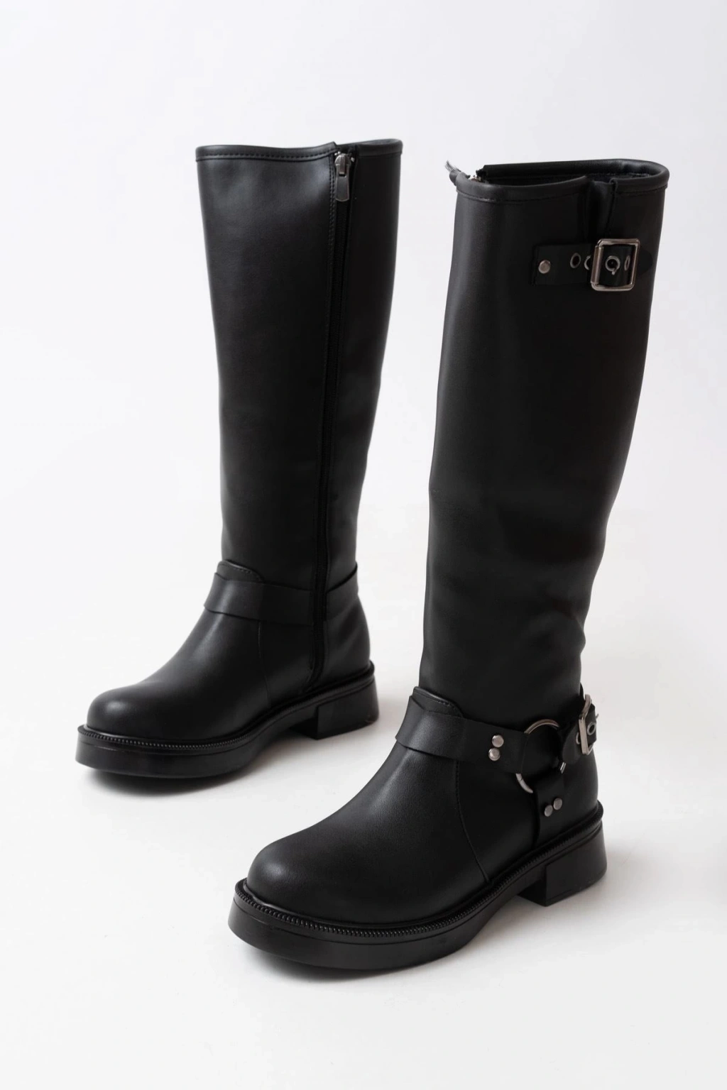 02-312 Siyah Toka Aksesuarlı Fermuarlı Günlük Kadın Çizme