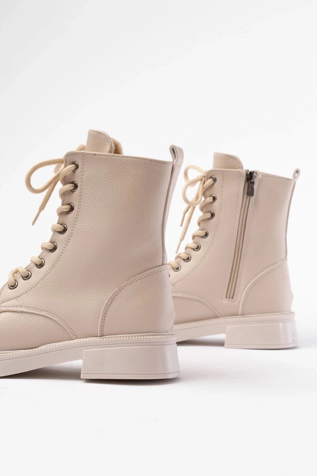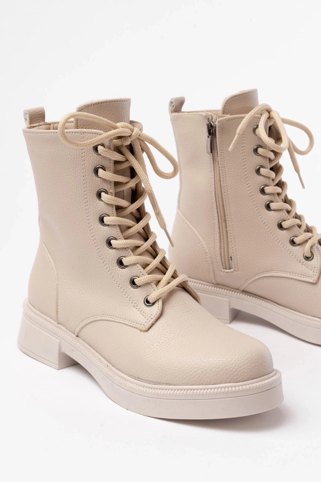 02-356 Bej Galata Düz Topuklu Bağcıklı Fermuarlı Günlük Kadın Bot
