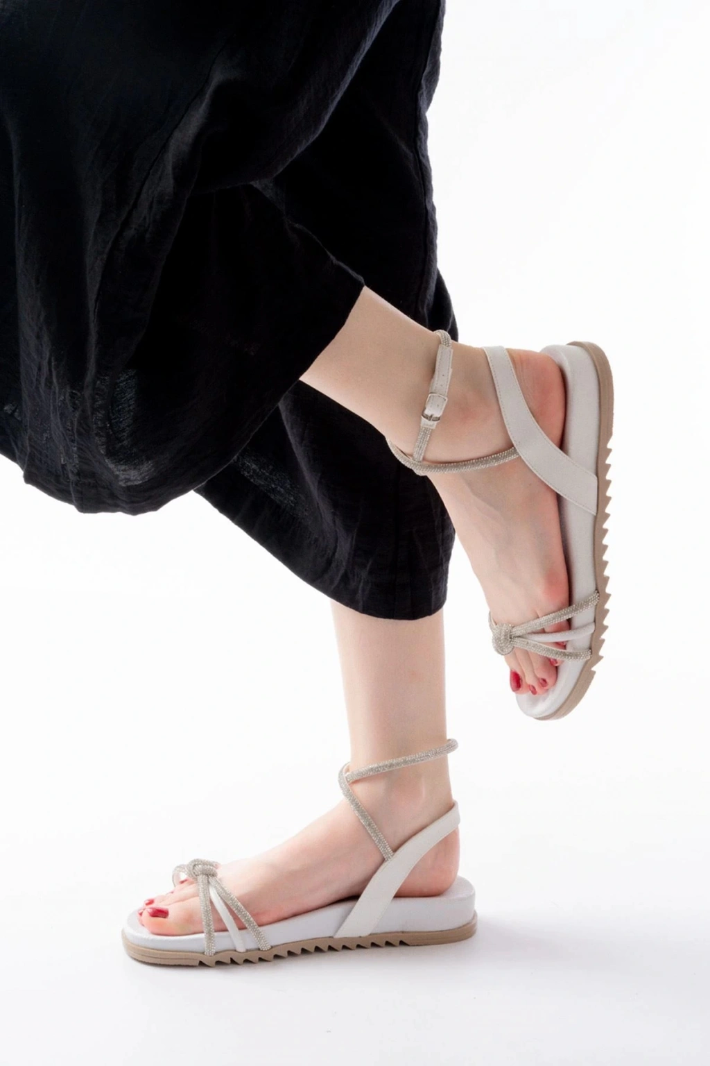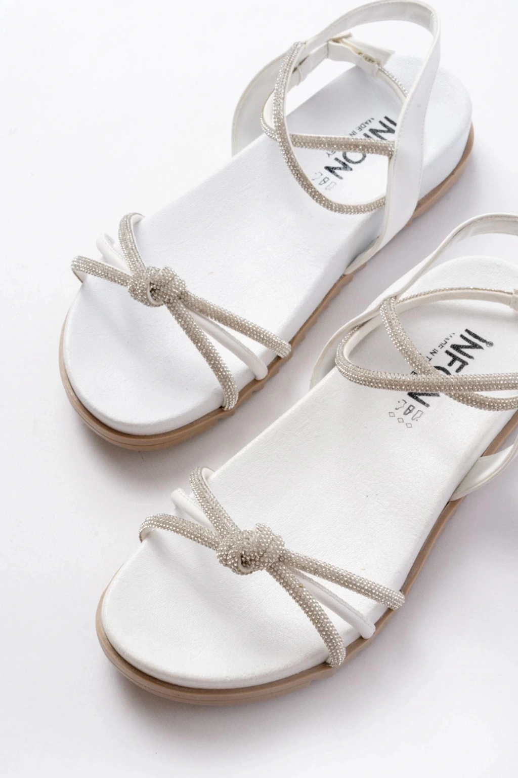 1001-1120 Beyaz Gümüş Taşlı Günlük Kadın Sandalet