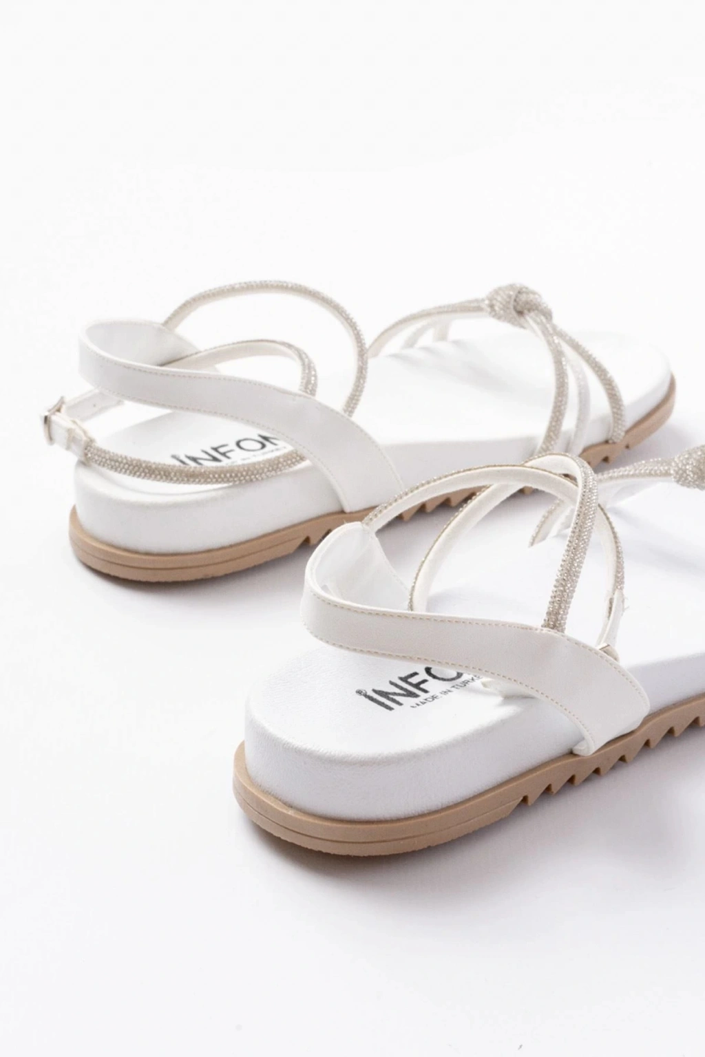 152-1110 Beyaz Multi Taşlı Parmak Arası Kadın Sandalet
