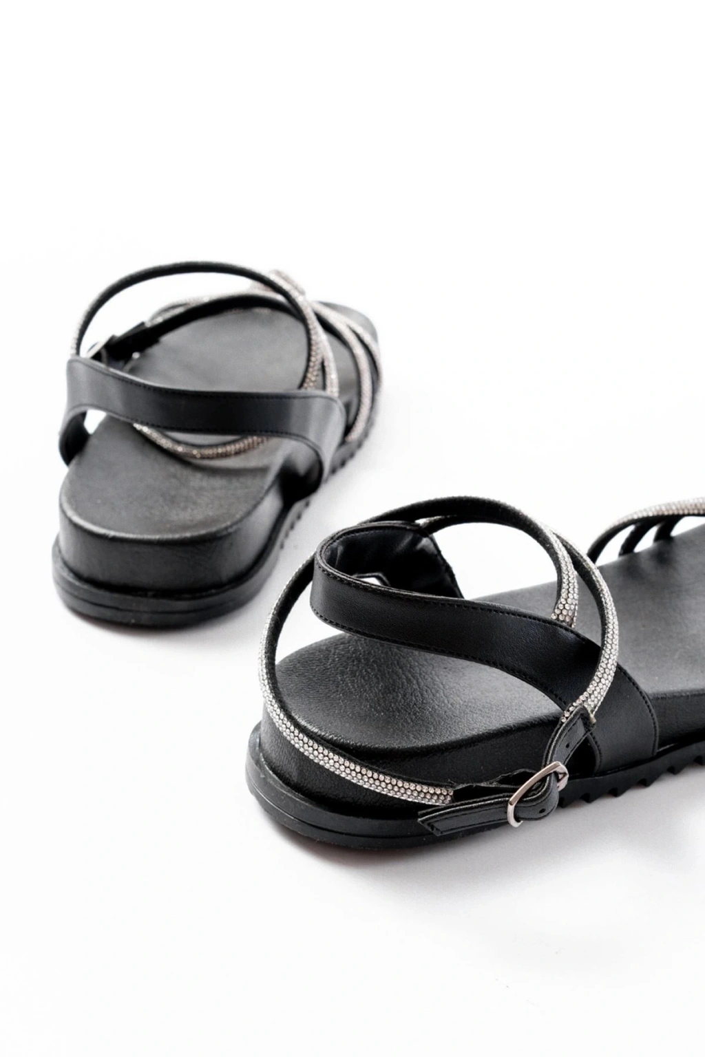 1001-1120 Siyah Gümüş Taşlı Günlük Kadın Sandalet