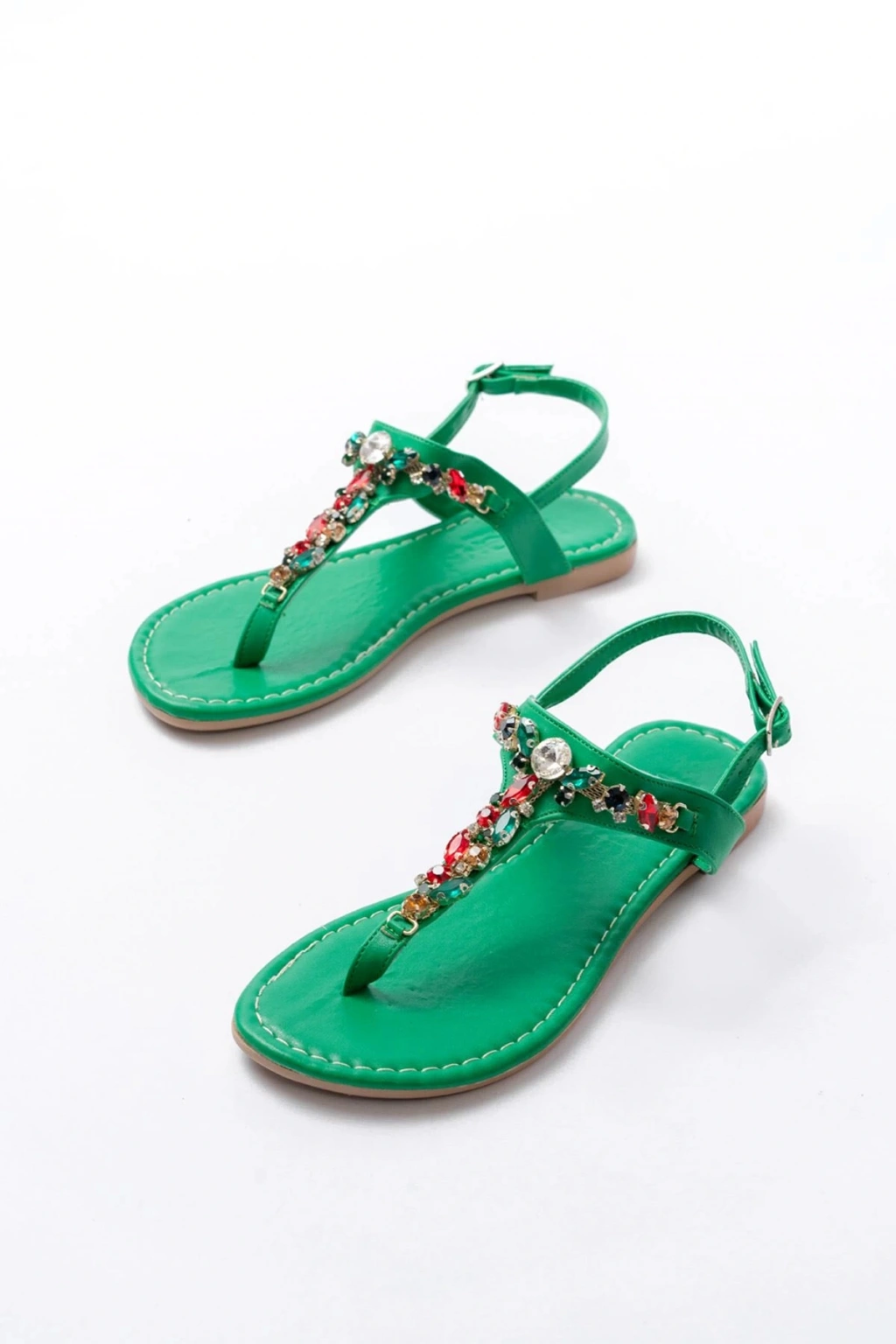 152-1110 Çimen Yeşili Multi Taşlı Parmak Arası Kadın Sandalet
