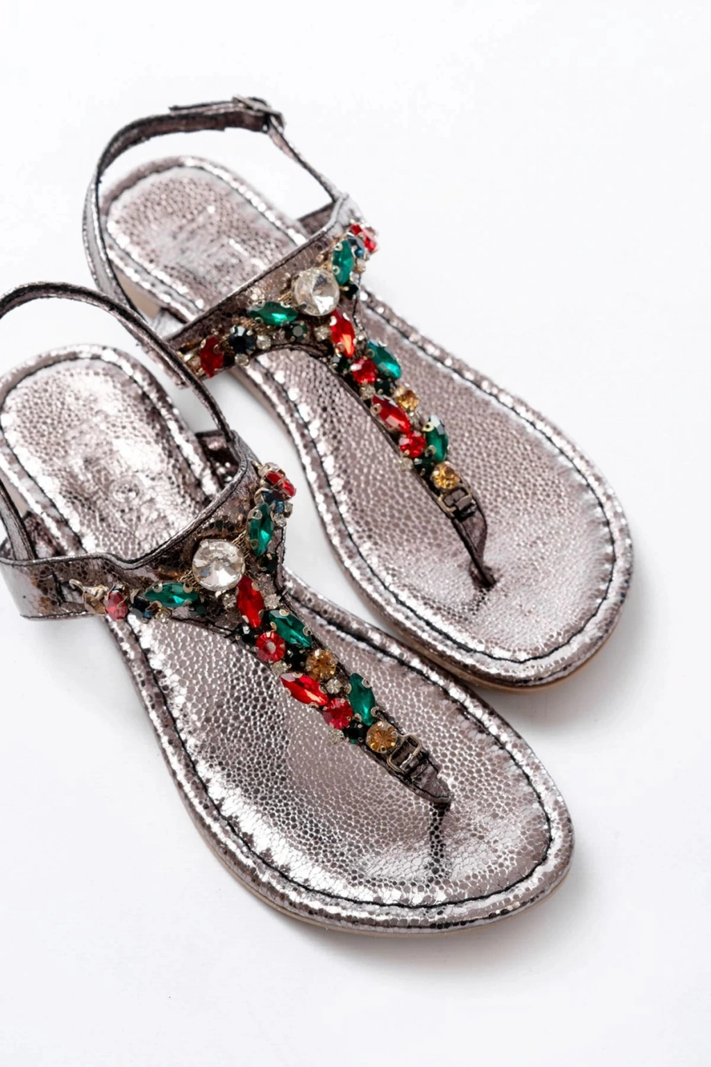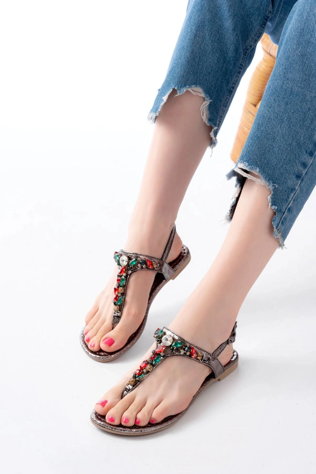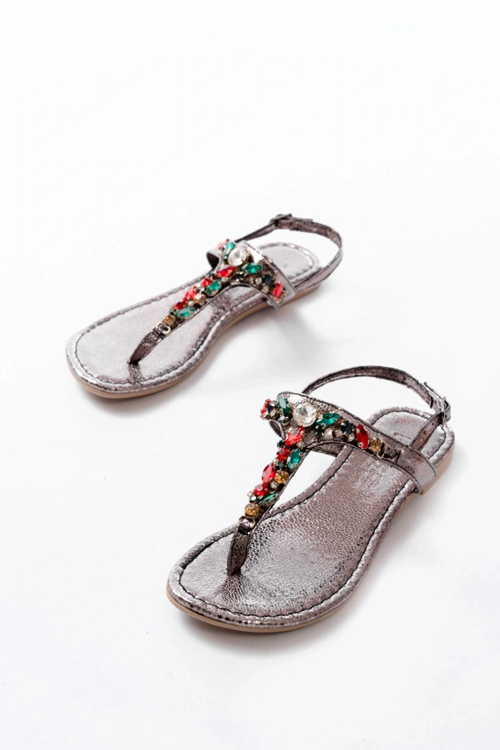 152-1110 Platin Multi Taşlı Parmak Arası Kadın Sandalet