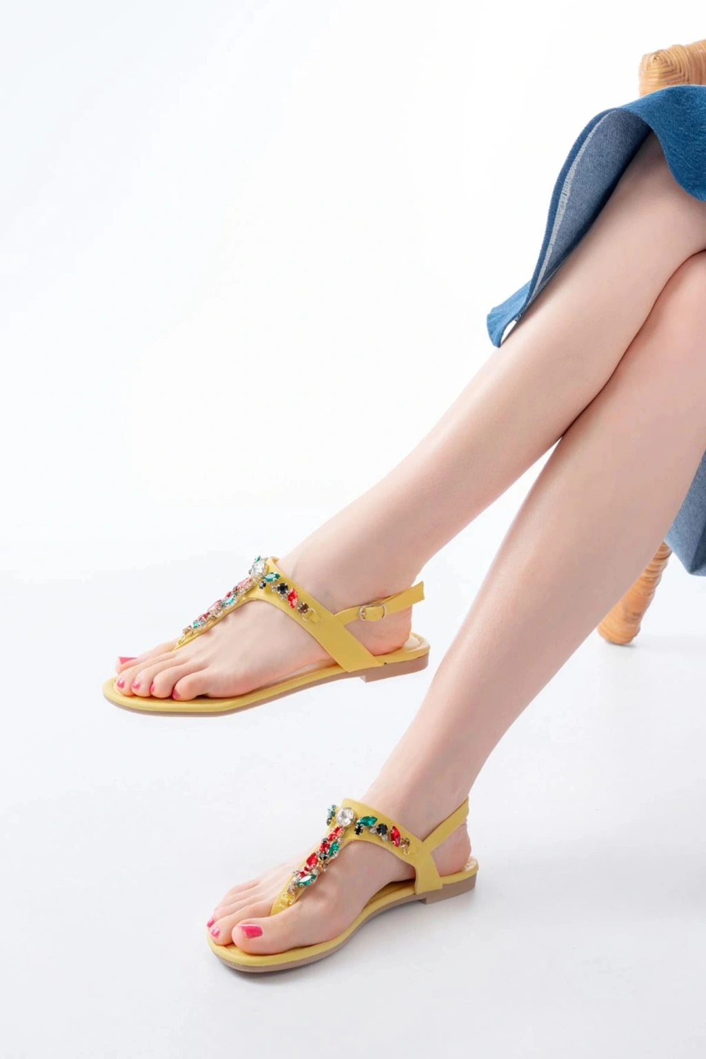 152-1110 Sarı Multi Taşlı Parmak Arası Kadın Sandalet
