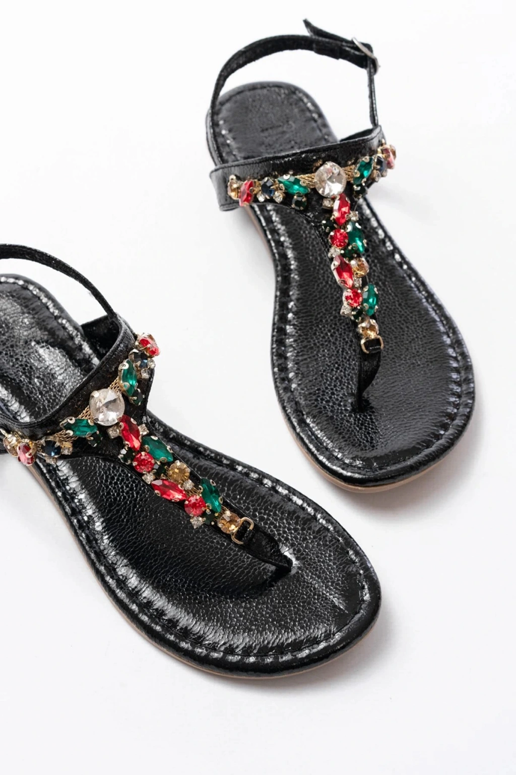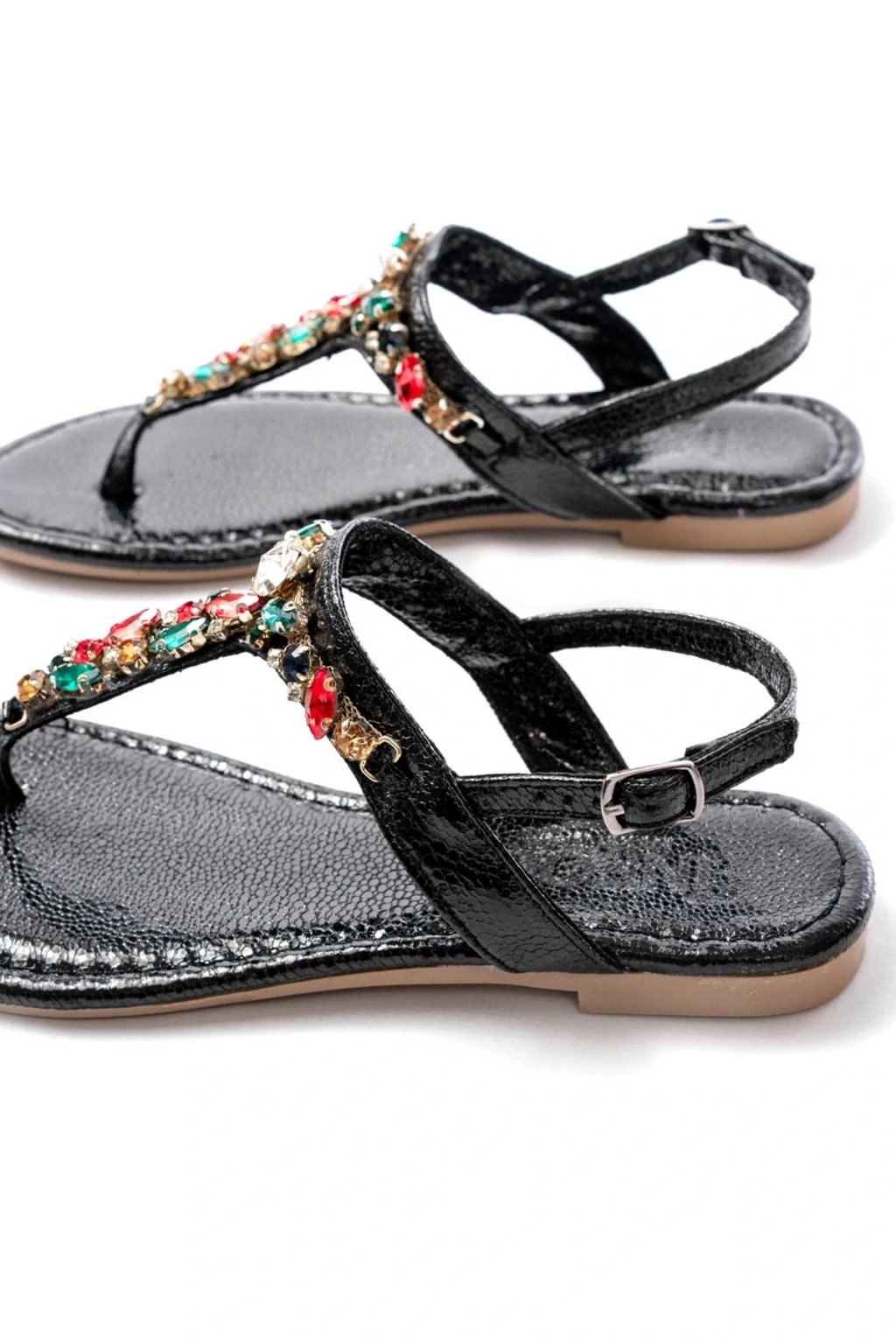 152-1110 Siyah Multi Taşlı Parmak Arası Kadın Sandalet