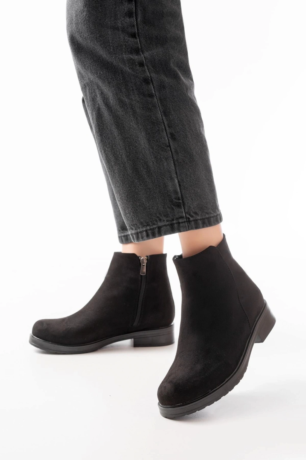 165-204 Siyah Süet Fermuarlı Günlük Kadın Bot