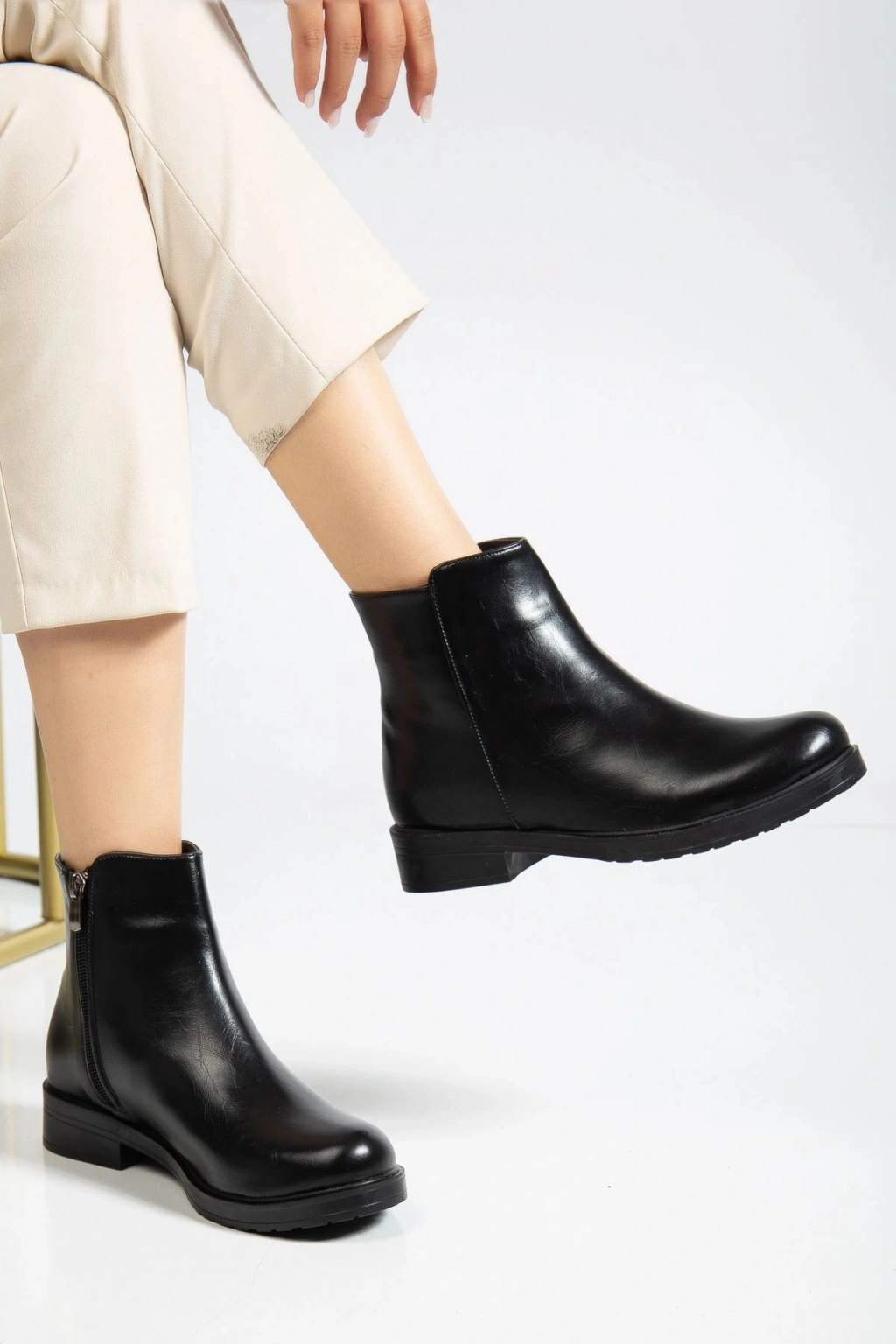 868-2015 Bej Fermuarlı Günlük Kadın Bot
