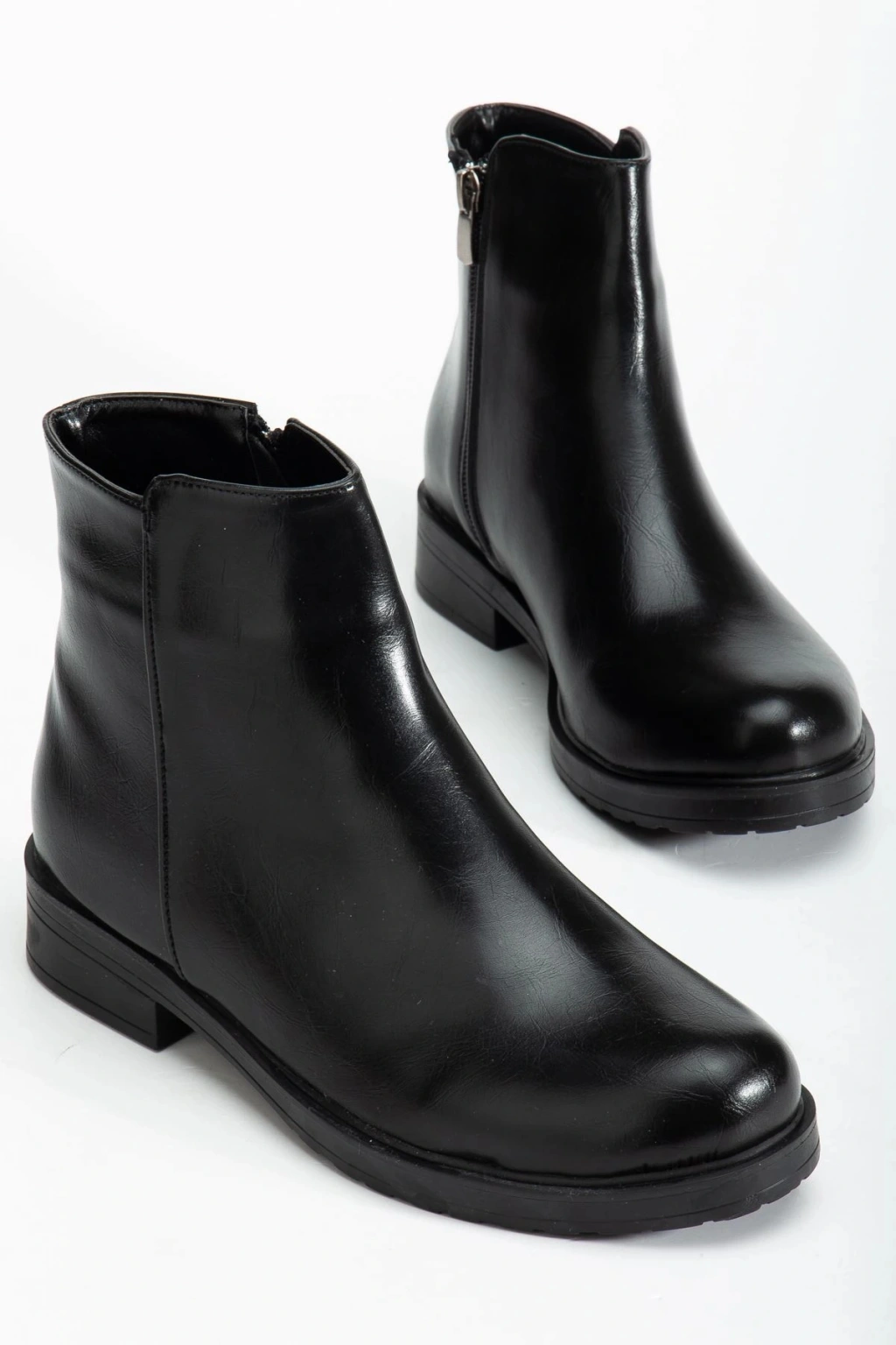 FZ-2550 Siyah Rugan Yüksek Tabanlı Bağcıklı Fermuarlı Günlük Kadın Bot