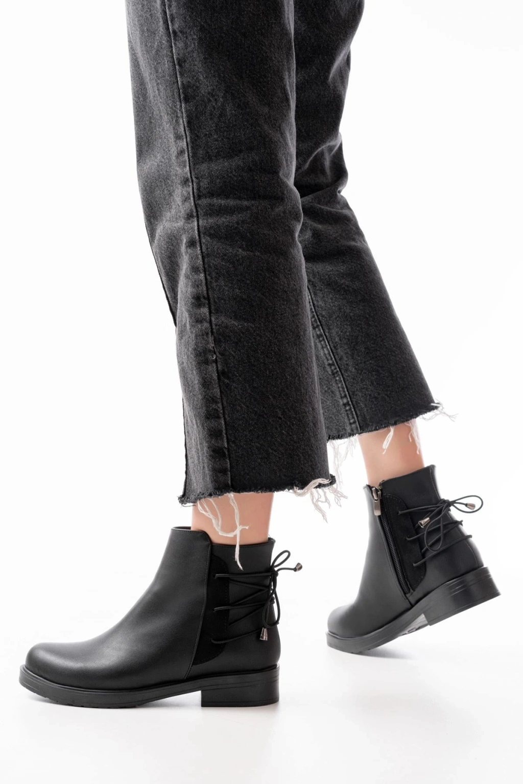 165-209 Siyah Arka Bağcık Aksesuarlı Fermuarlı Günlük Kadın Bot