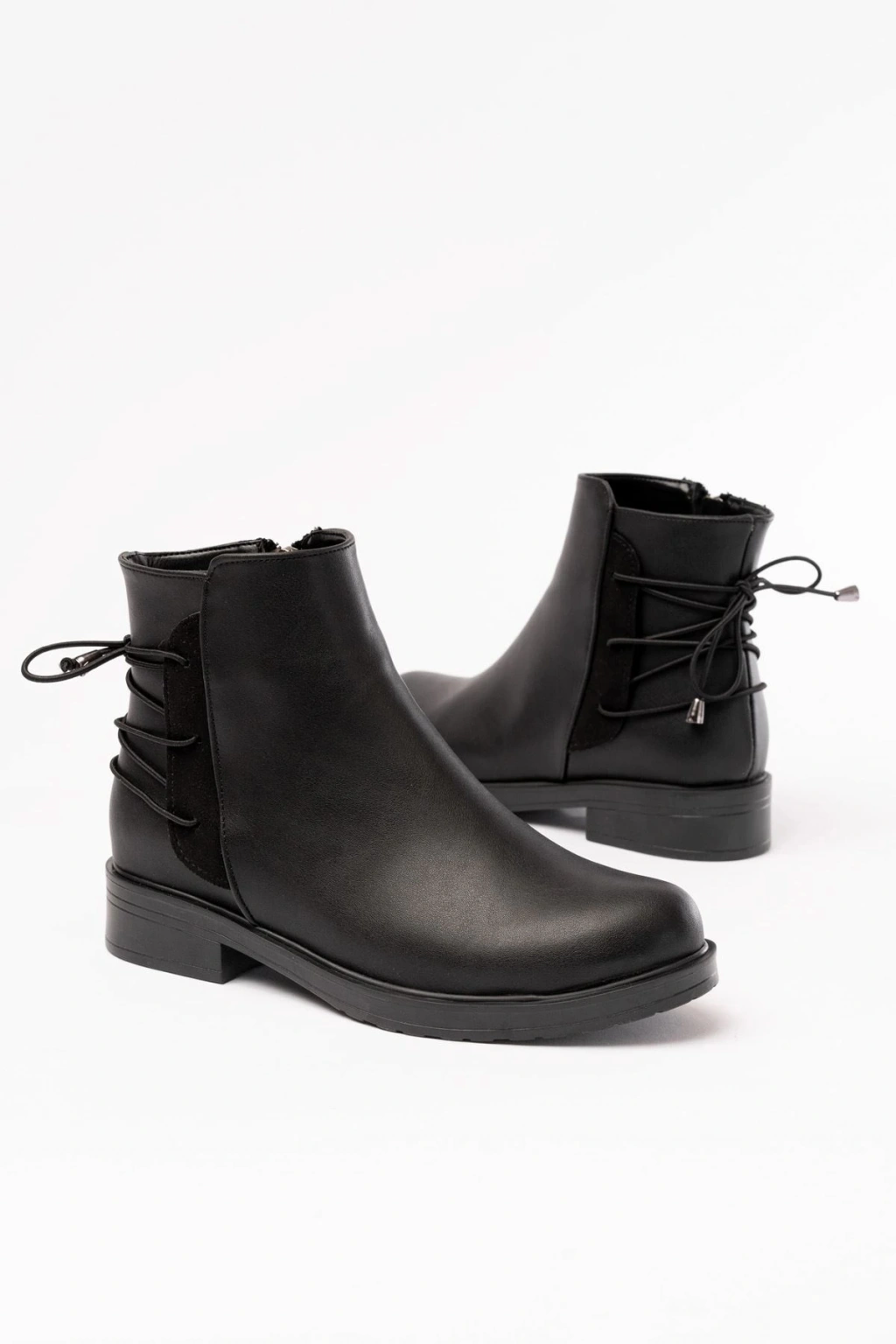 2024-2289 Siyah Bağcıklı Fermuarlı Günlük Kadın Bot
