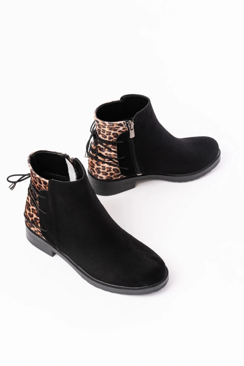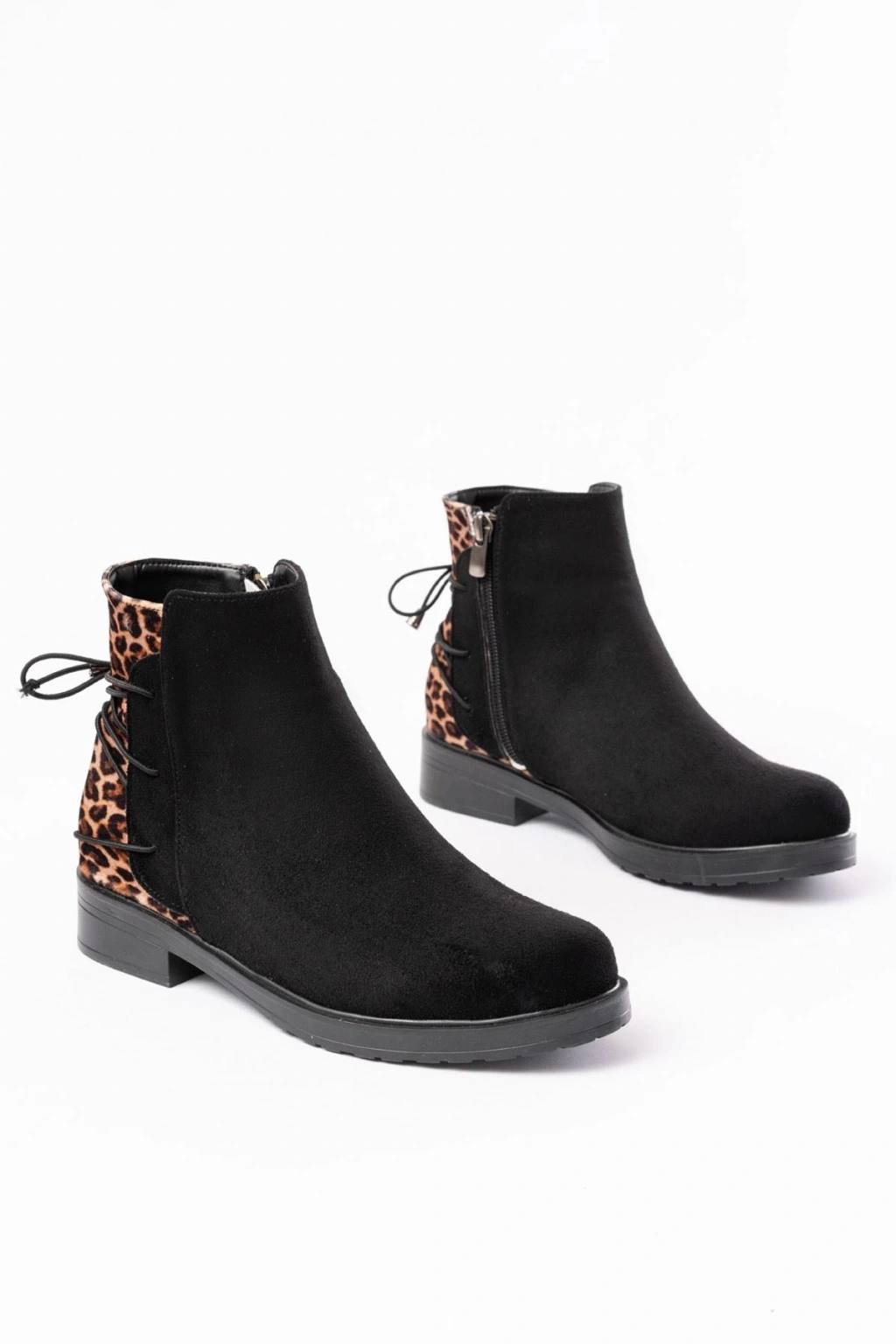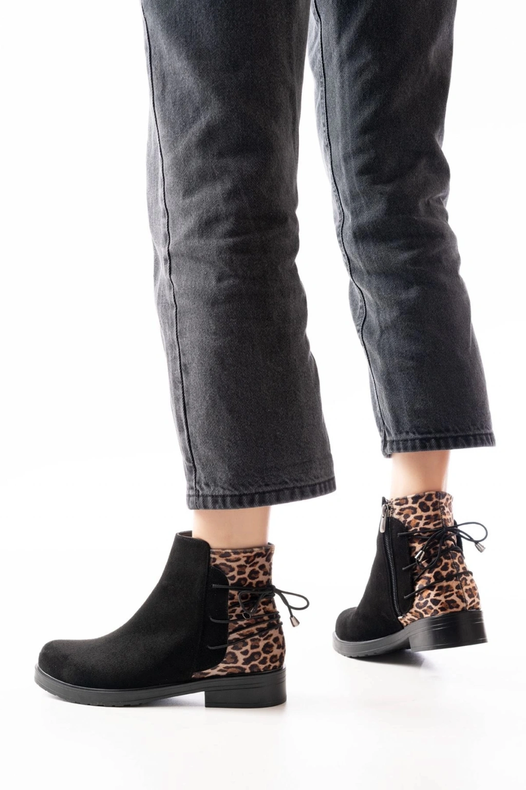 02-3055 Siyah Rugan Leopar Bağcıklı Fermuarlı Günlük Kadın Bot