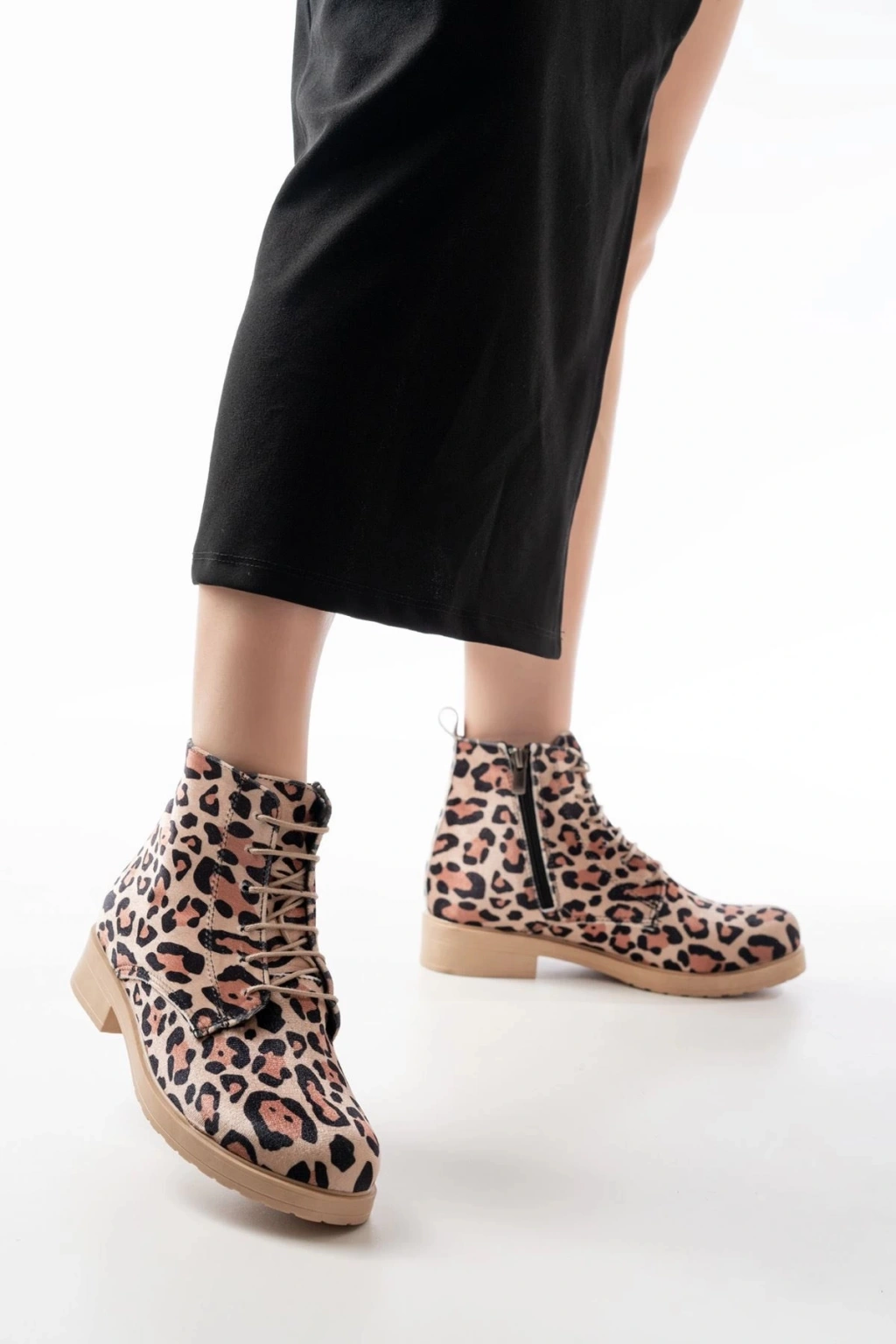 165-225 Leopar Bağcıklı Fermuarlı Günlük Kadın Bot