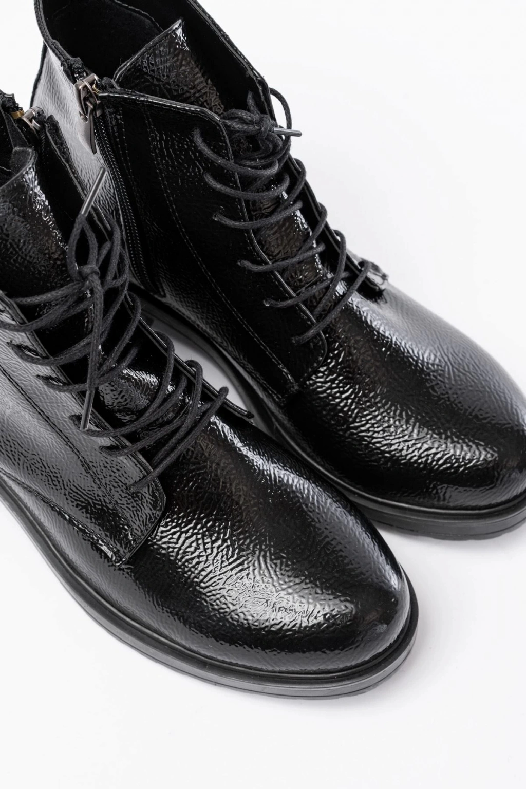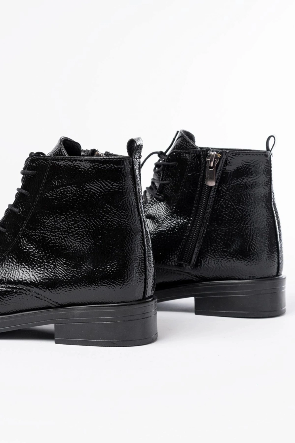 FZ-2550 Siyah Rugan Yüksek Tabanlı Bağcıklı Fermuarlı Günlük Kadın Bot