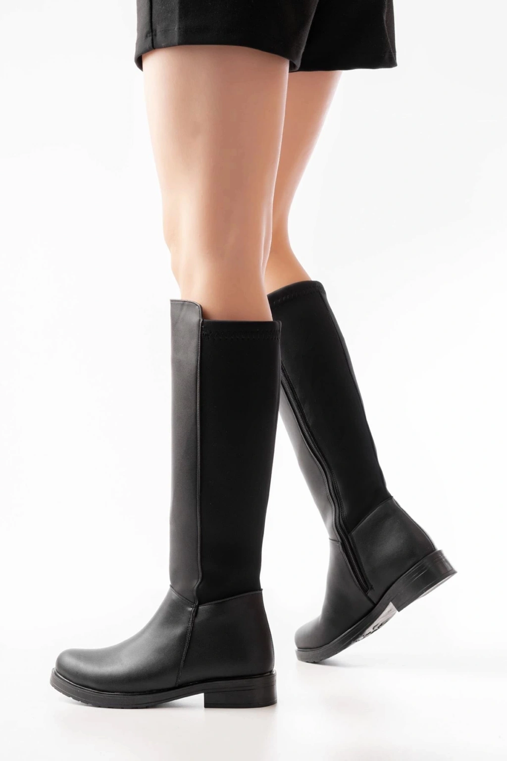 165-305 Siyah Arka Streç Fermuarlı Günlük Kadın Çizme