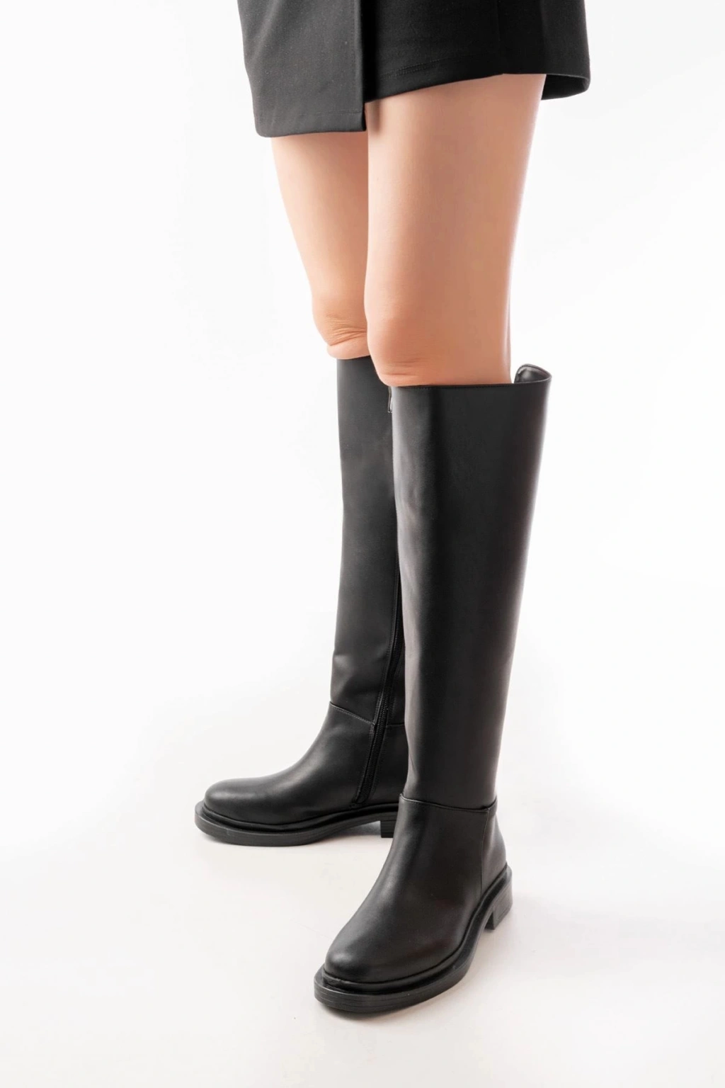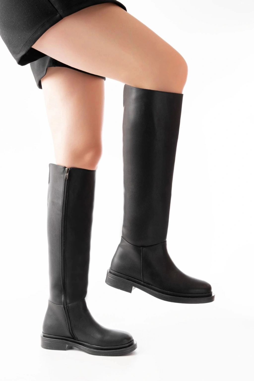 2024-3007 Siyah Fermuarlı Günlük Kadın Çizme