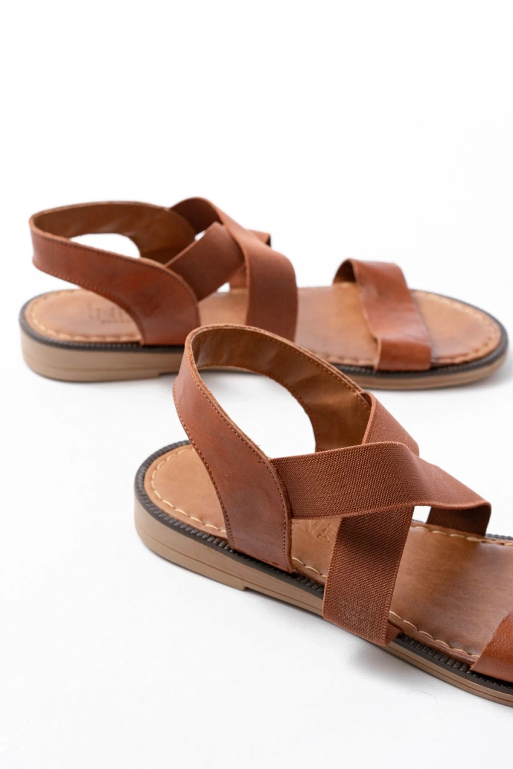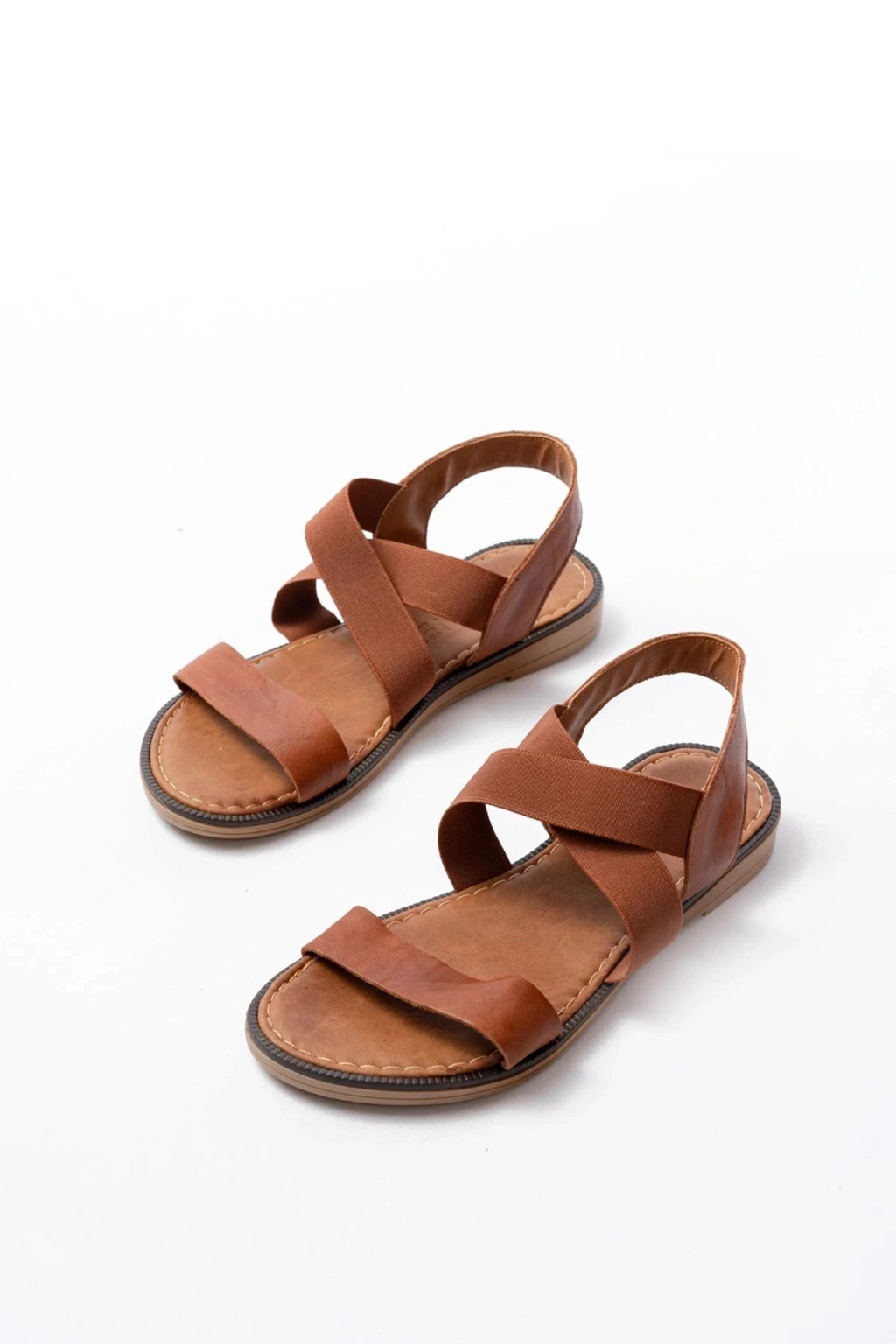 205-04 Taba Tek Bantlı Lastikli Hakiki Deri Ortopedik Taban Kadın Sandalet