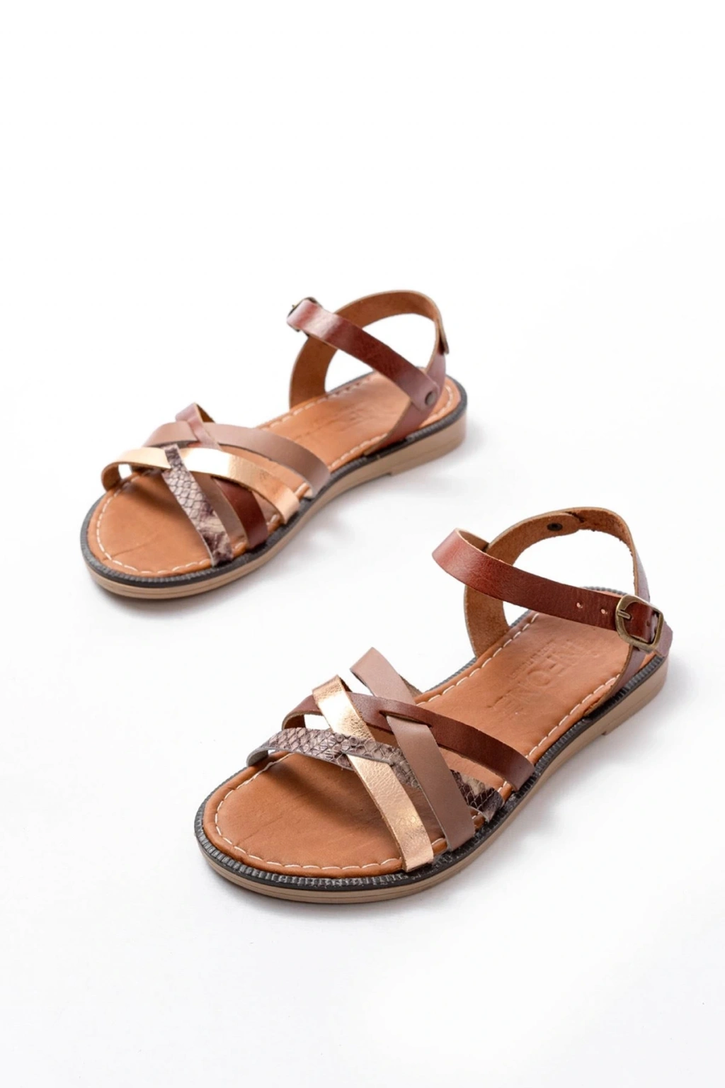 205-093 Koyu Kahve Garni Hakiki Deri Ortopedik Taban Kadın Sandalet
