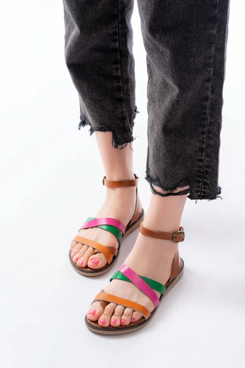 205-209 Multi Hakiki Deri Tokalı Parmak Arası Kadın Sandalet