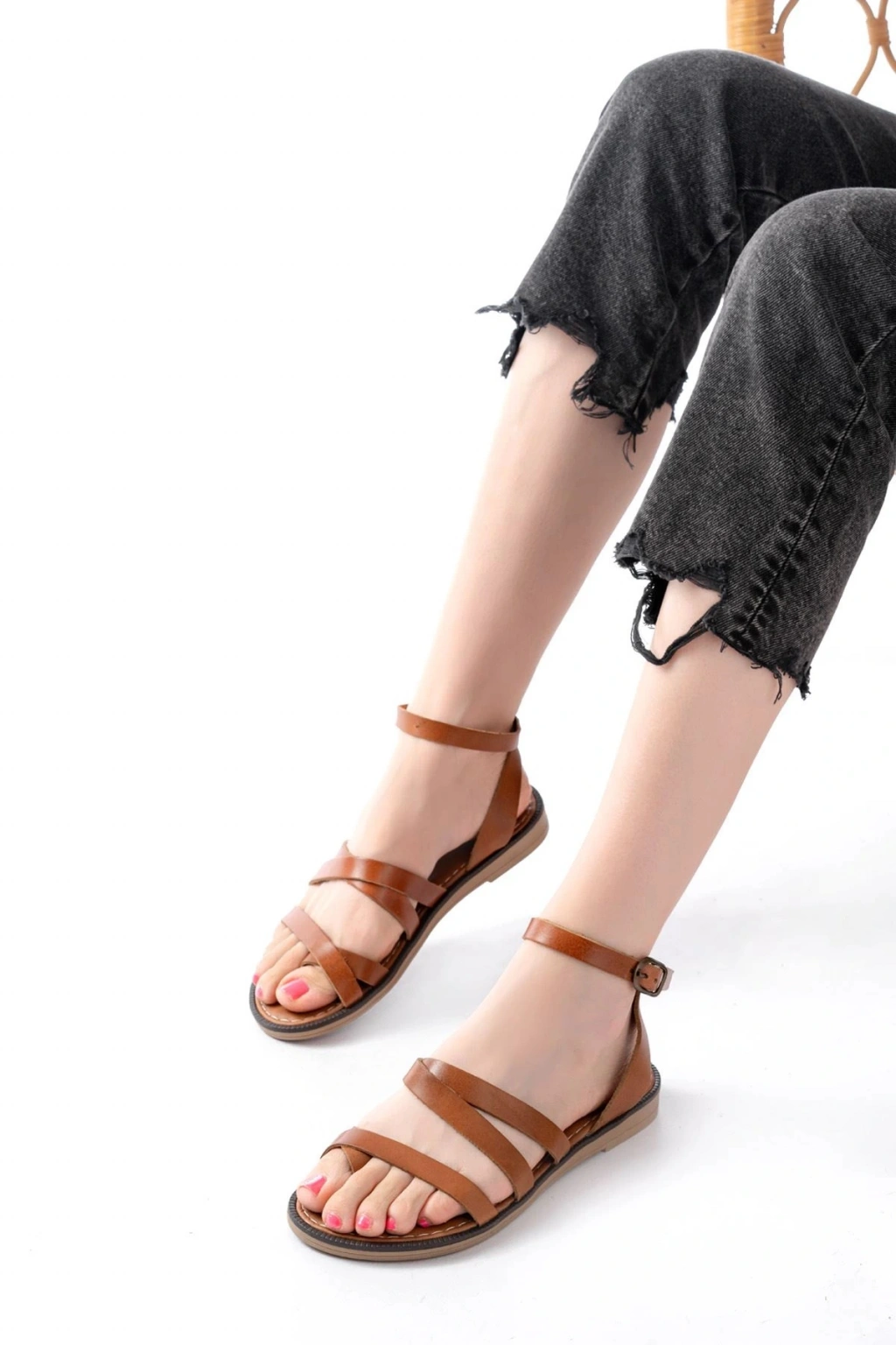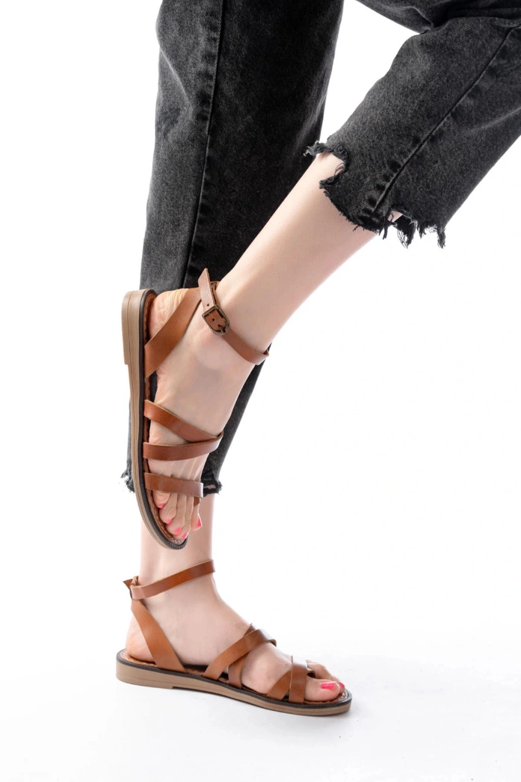 205-02 Taba Multi Ortopedik Hakiki Deri Kadın Sandalet