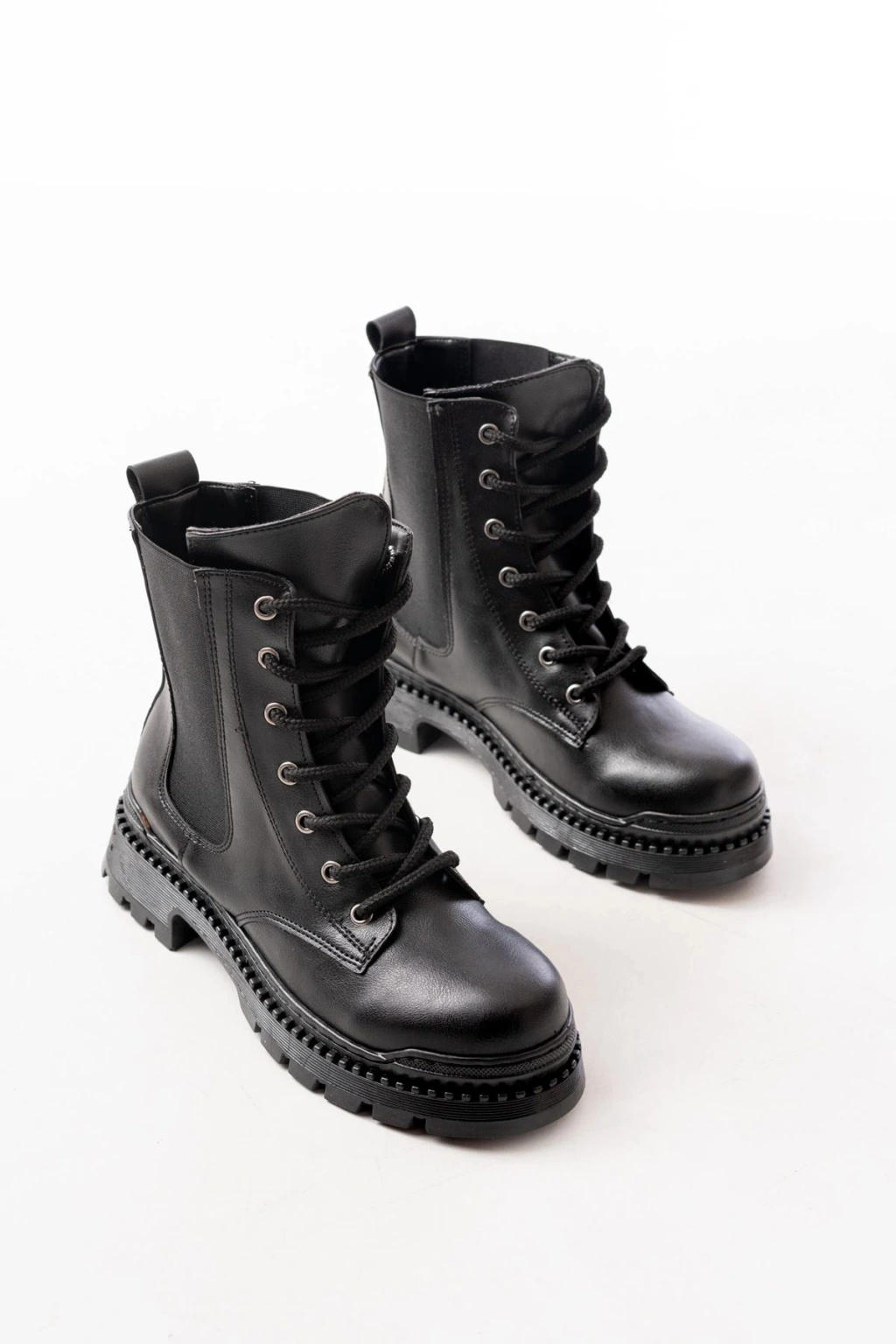 842-2961 Siyah Bağcıklı Kalın Tabanlı Fermuarlı Günlük Kadın Bot