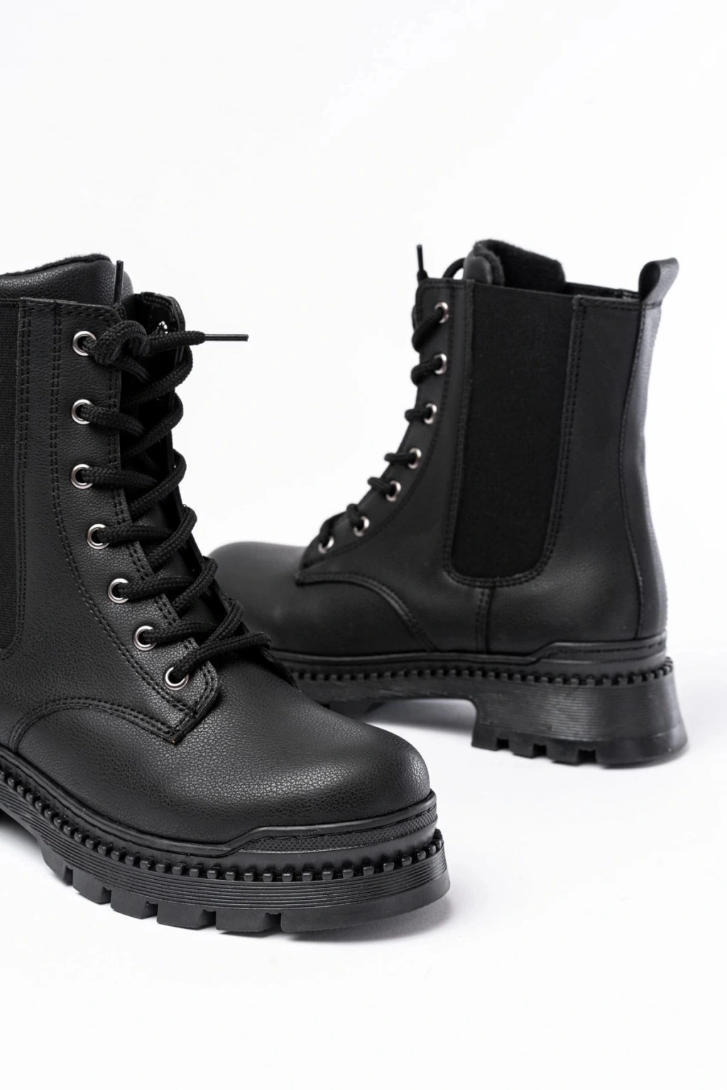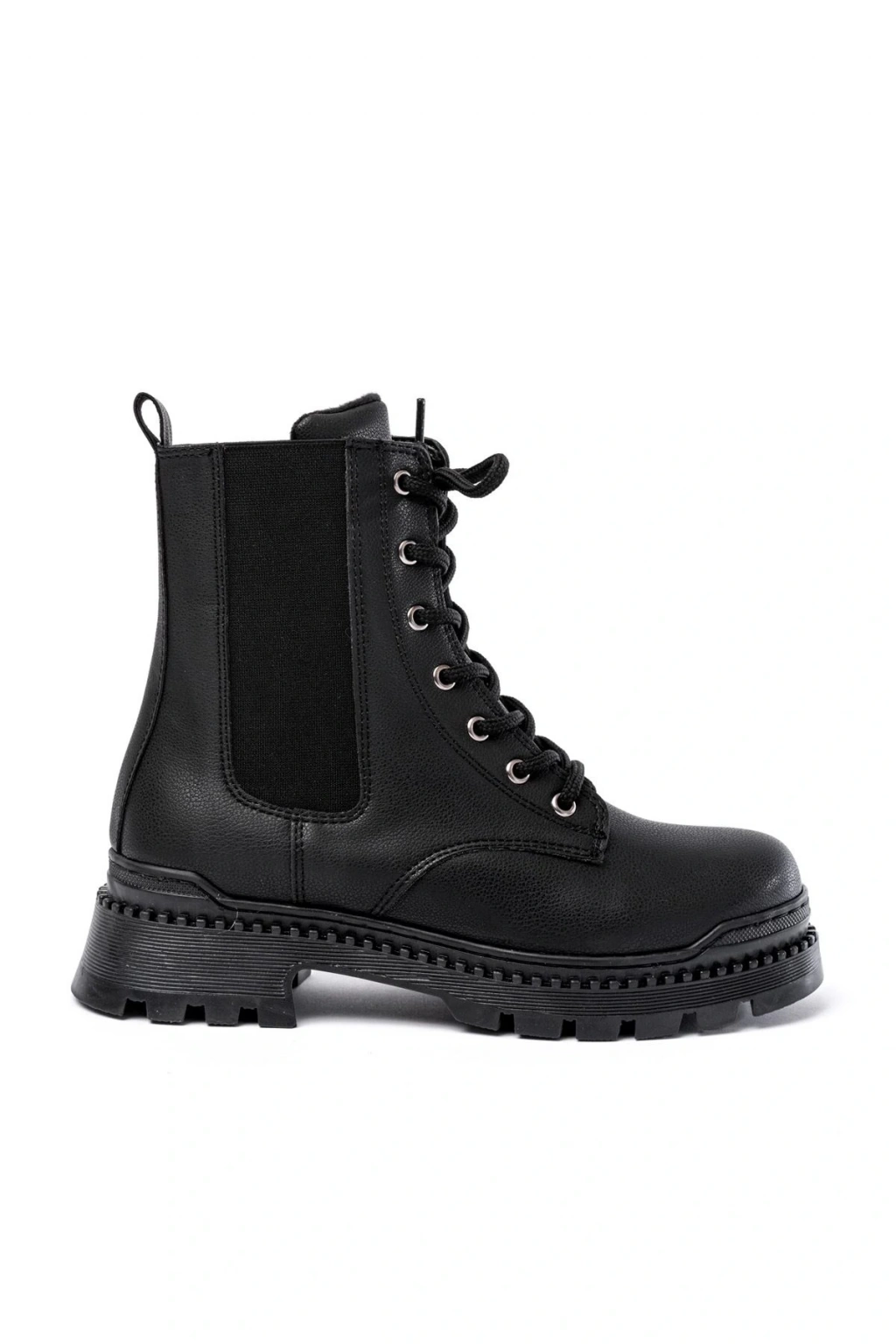 2051-298 Siyah Luna Düz Topuklu Bağcıklı Lastikli Günlük Kadın Bot