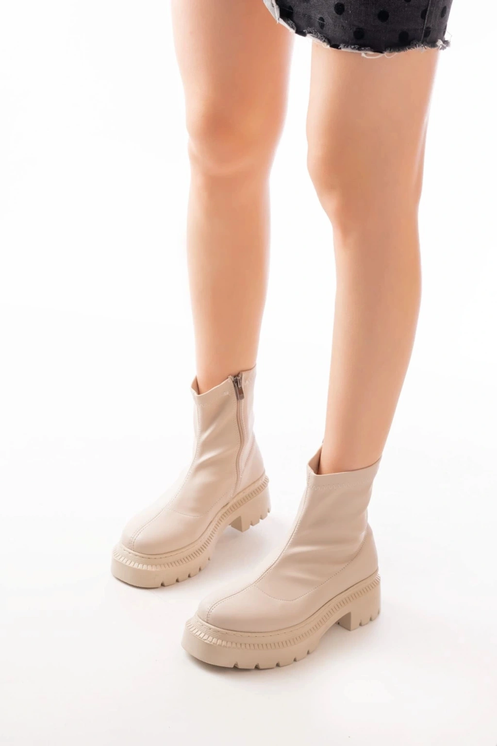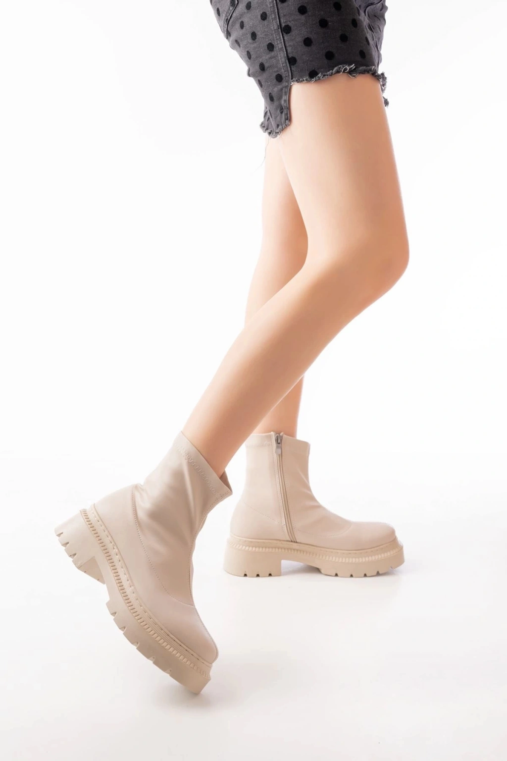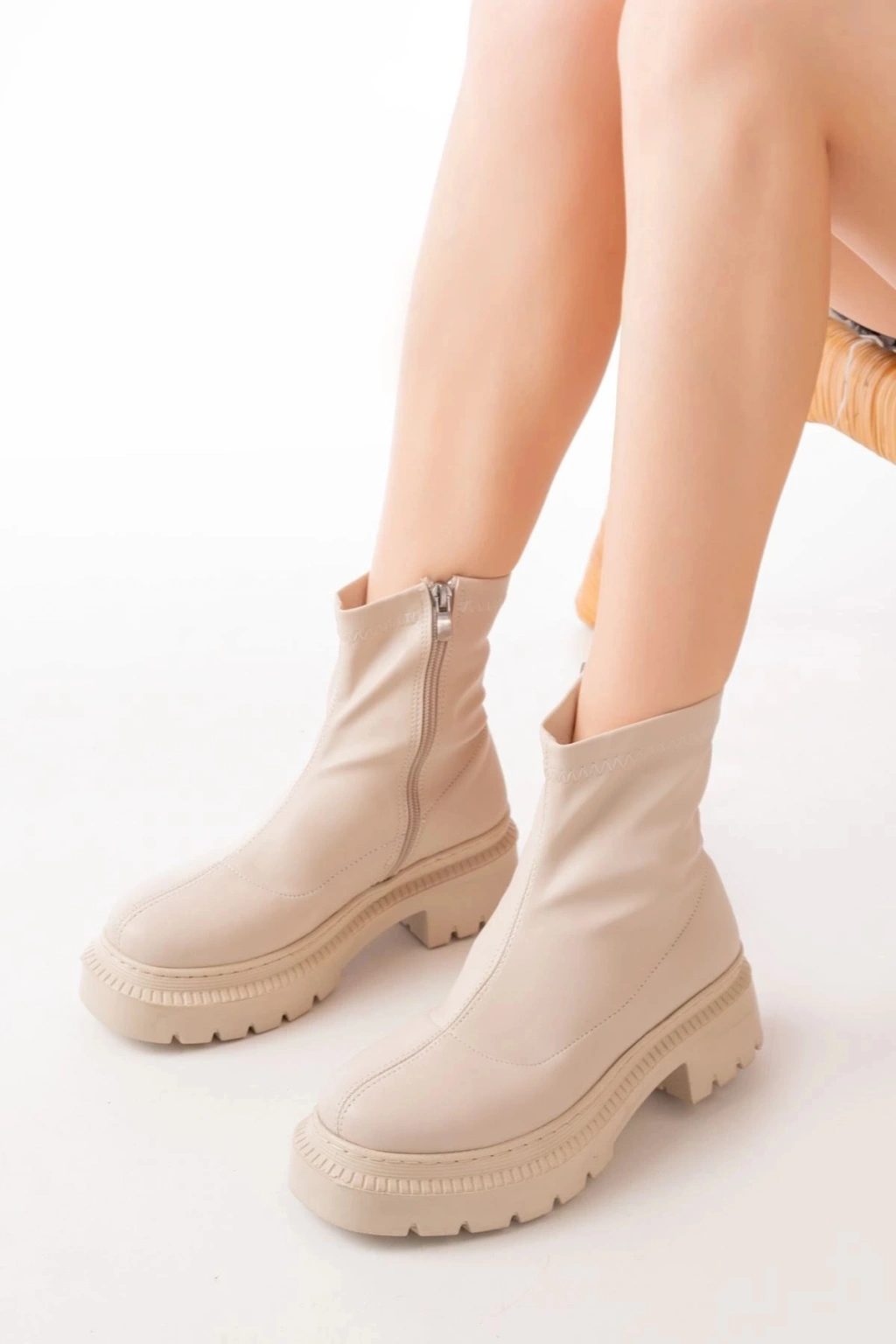 236-2011 Bej Streç Fermuarlı Günlük Kadın Bot