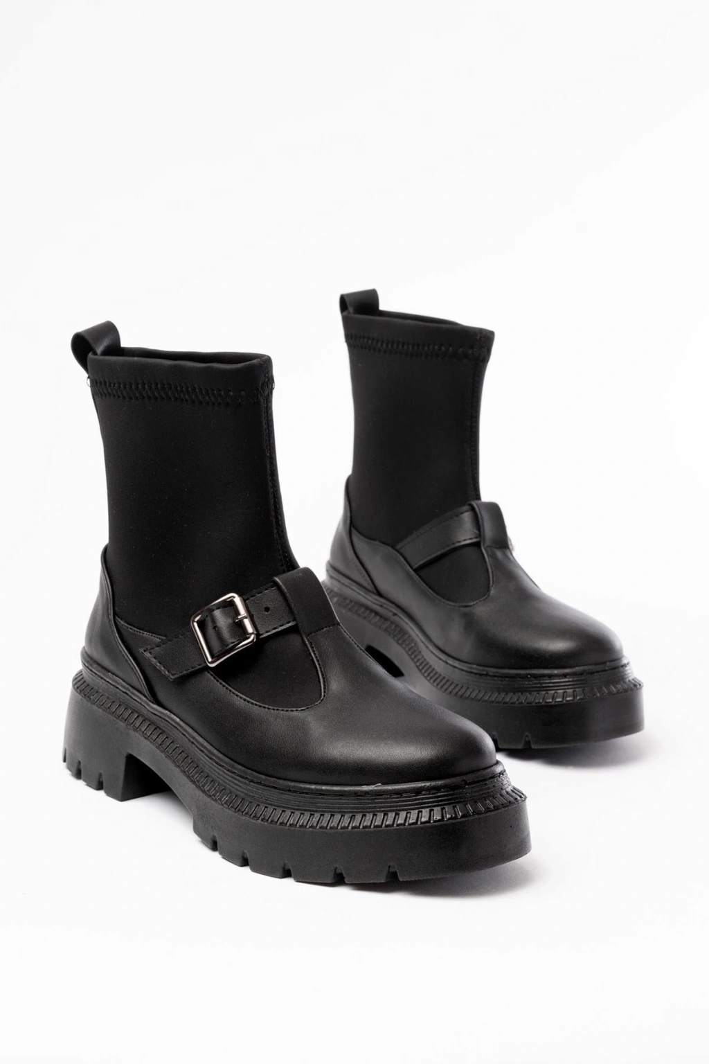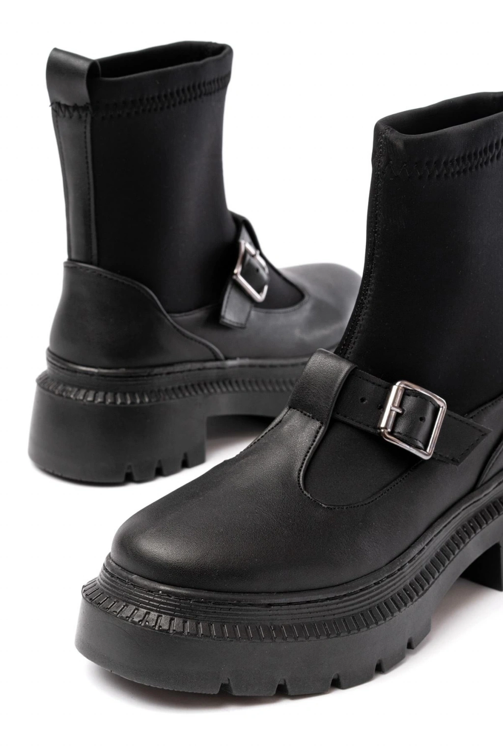 842-2961 Siyah Bağcıklı Kalın Tabanlı Fermuarlı Günlük Kadın Bot