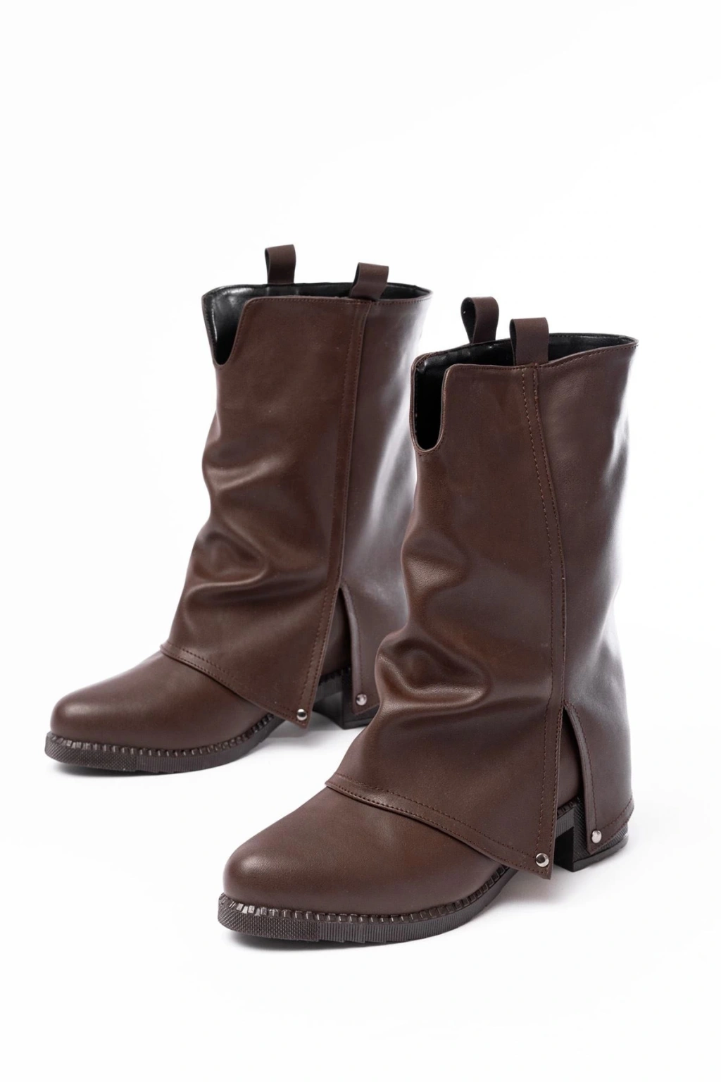 5109-3057 Kahverengi Lastikli Fermuarlı Kalın Topuklu Günlük Kadın Bot