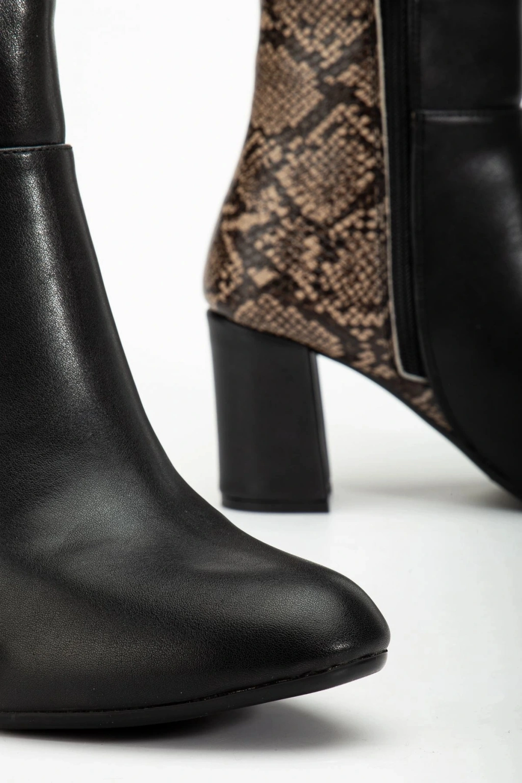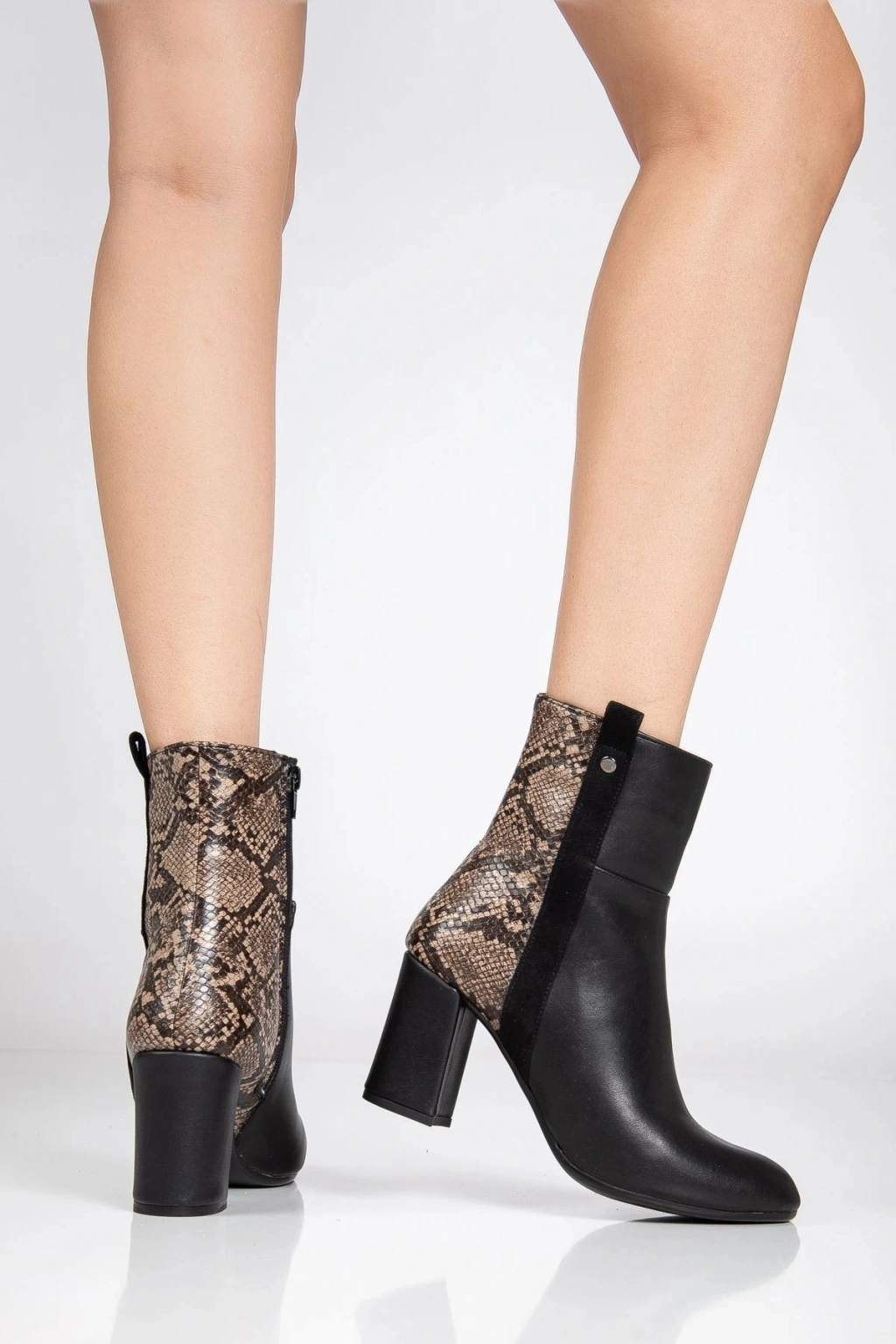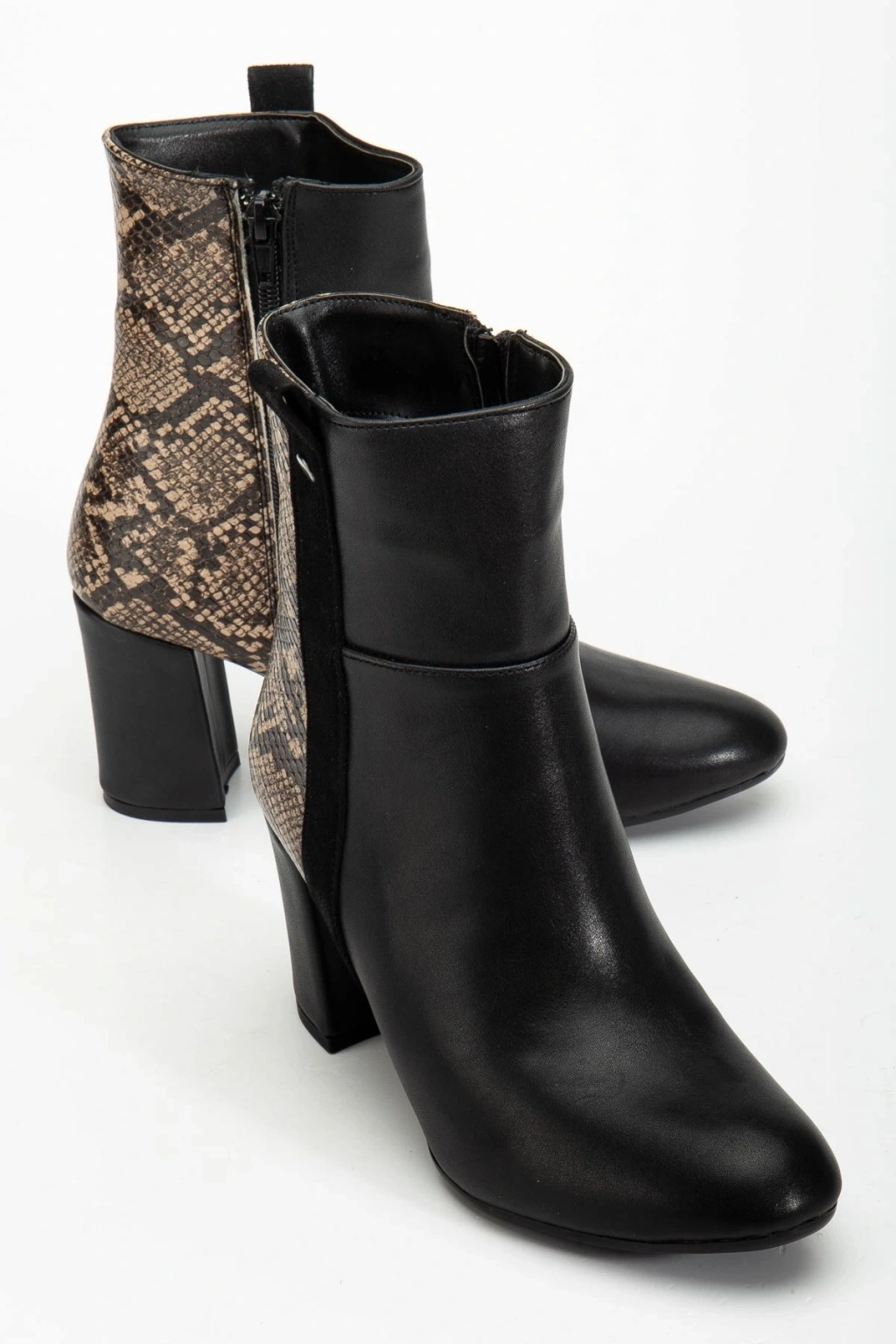 292 Siyah Leopar Desen Detaylı Fermuarlı Yüksek Topuklu Günlük Kadın Bot