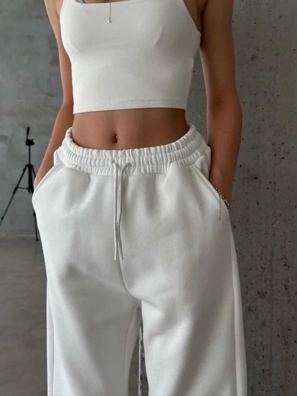KAZAX markasının 3 iplik şardonlu Lastik paça eşofmanı beyaz renkte şıklığı ve rahatlığı bir arada sunuyor. Hem spor yaparken hem de günlük hayatta şıklığından ödün vermek istemeyen kadınlar için ideal bir seçenek.