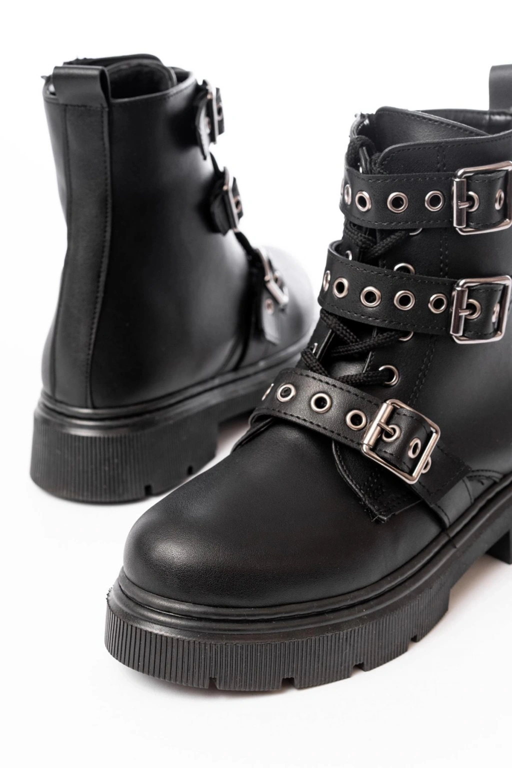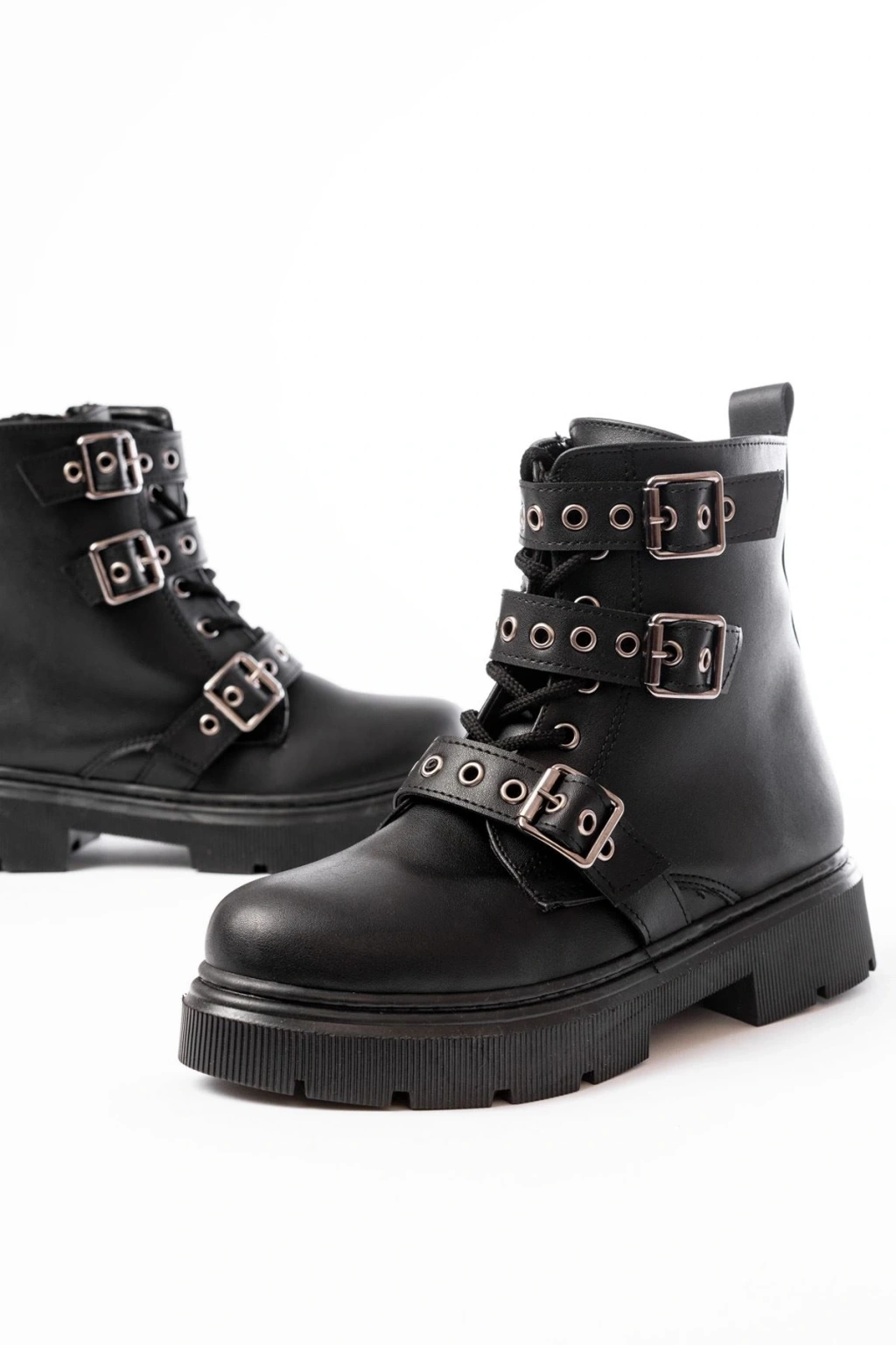 842-2961 Siyah Bağcıklı Kalın Tabanlı Fermuarlı Günlük Kadın Bot