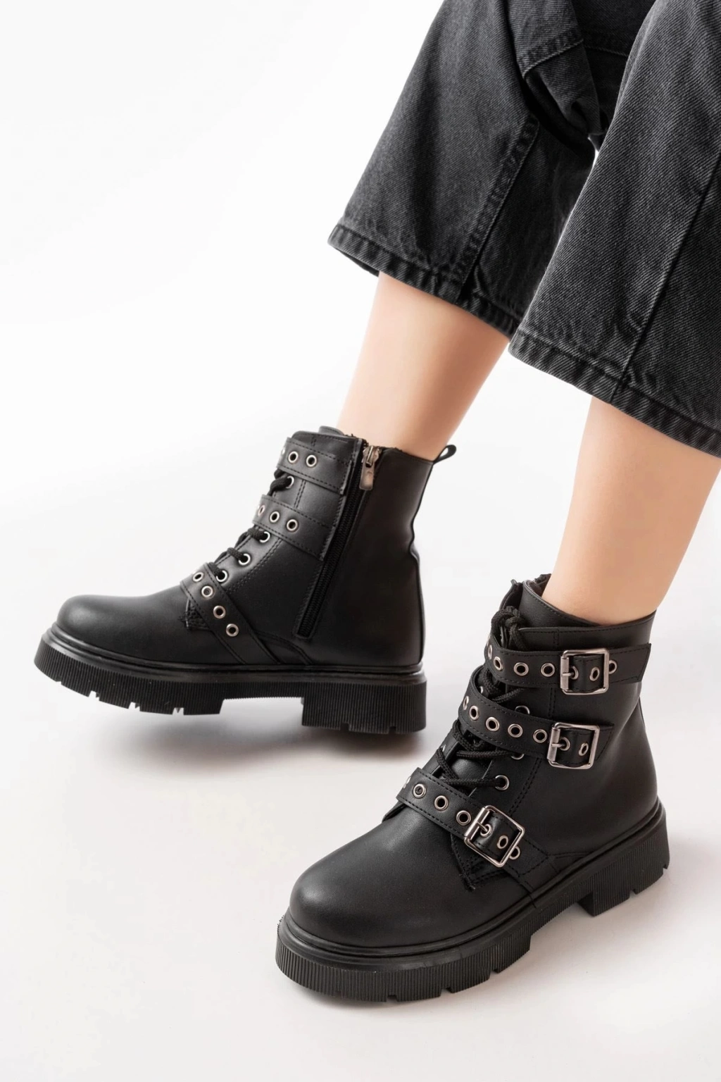 2024-2289 Siyah Bağcıklı Fermuarlı Günlük Kadın Bot