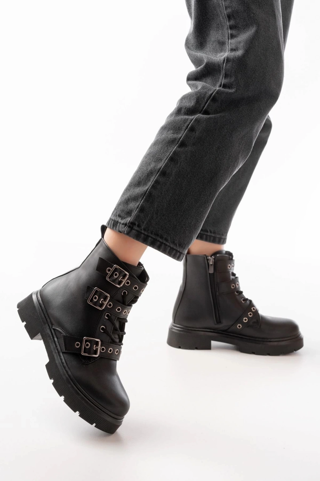508-3038 Siyah Toka Aksesuarlı Fermuarlı Günlük Kadın Bot