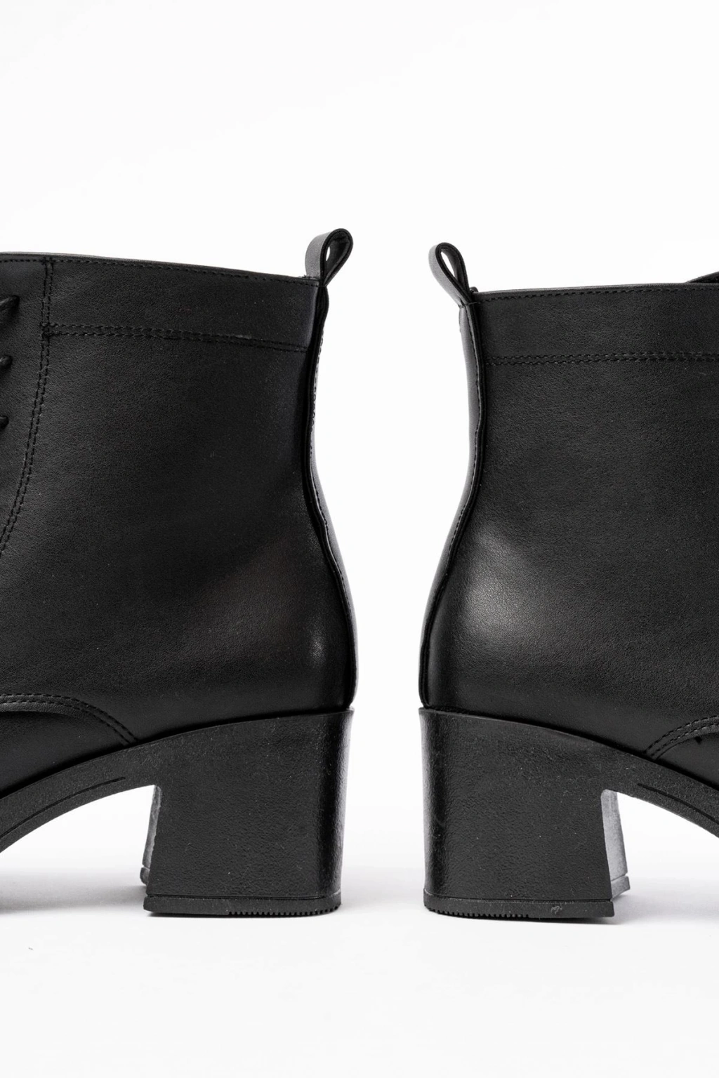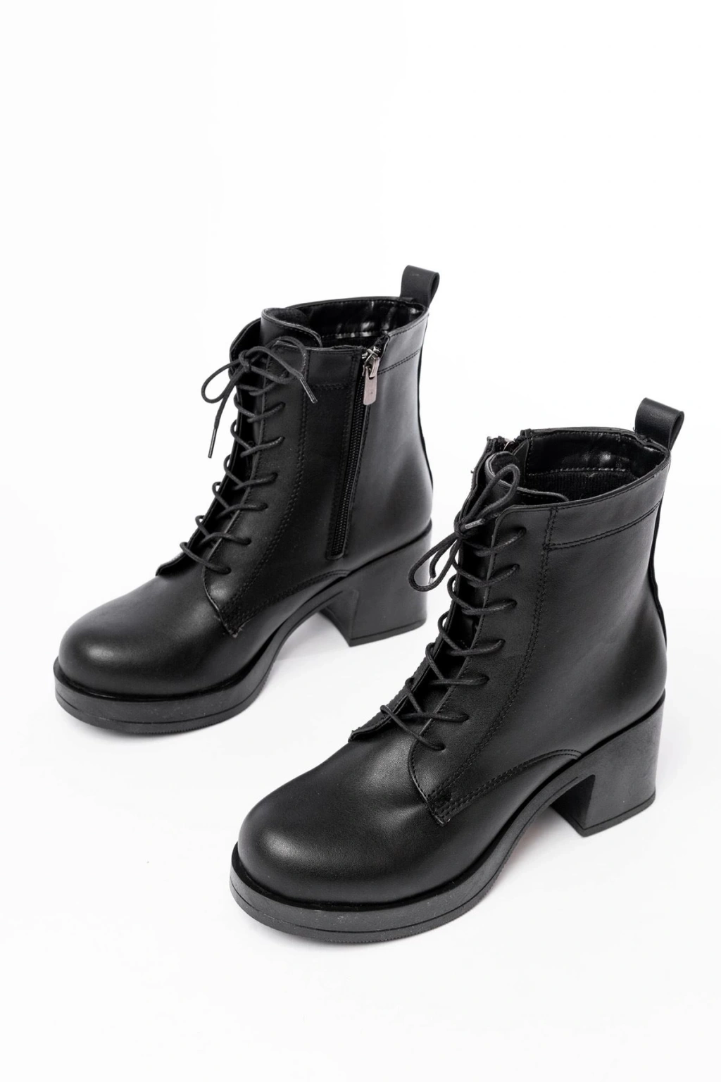 5109-3025 Siyah Bağcıklı Fermuarlı Kalın Topuklu Günlük Kadın Bot
