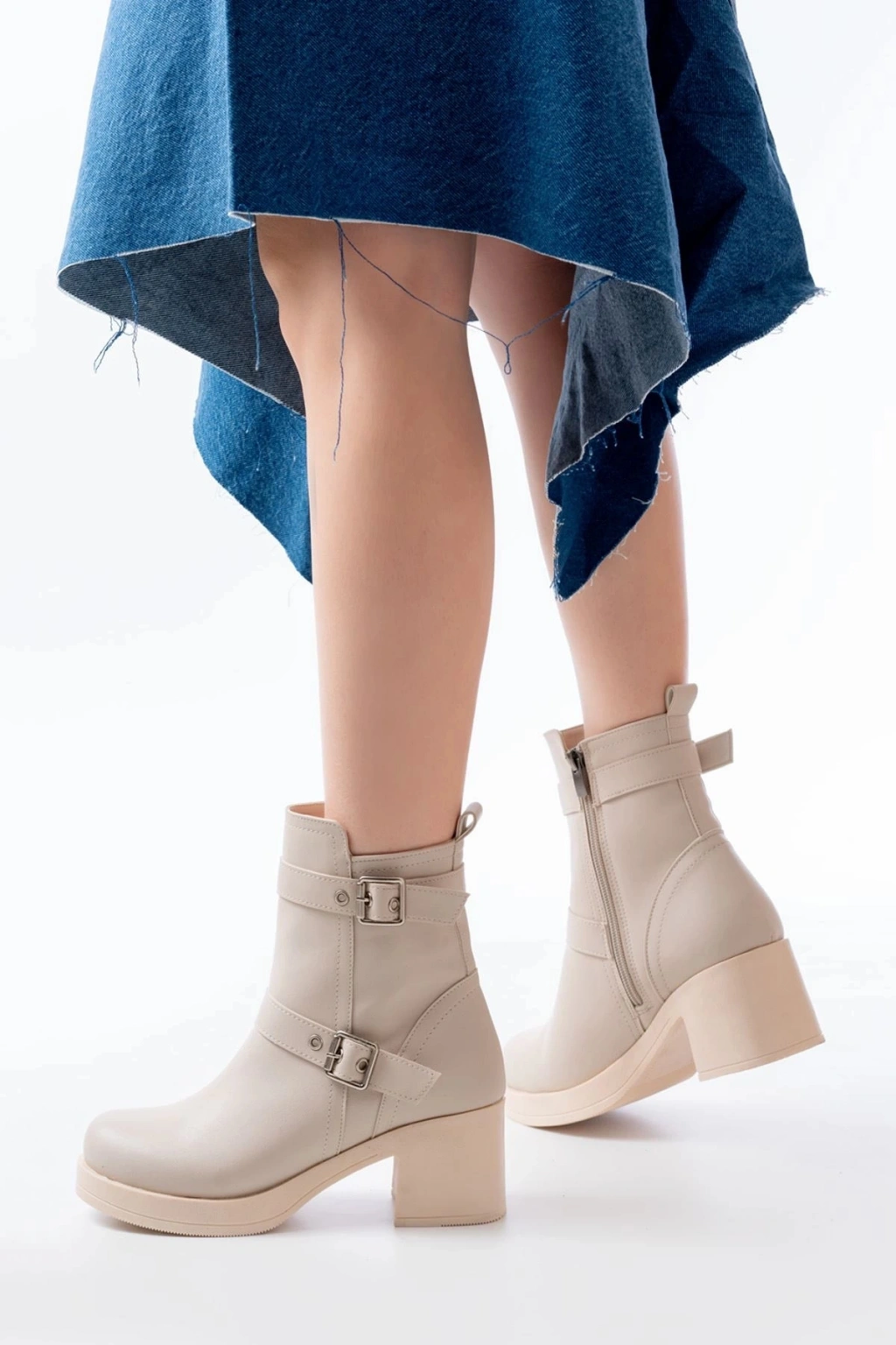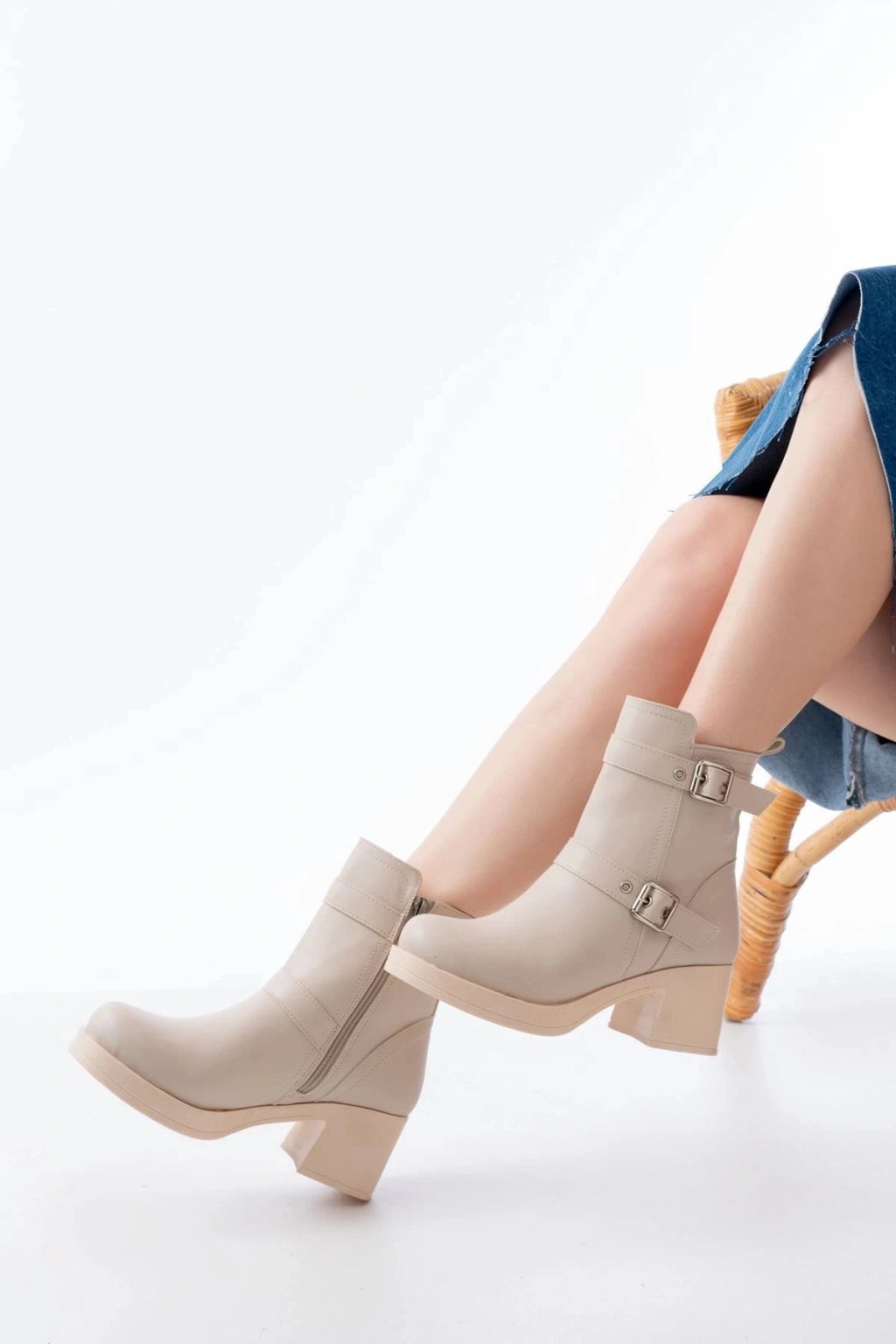 508-3038 Bej Toka Aksesuarlı Fermuarlı Günlük Kadın Bot