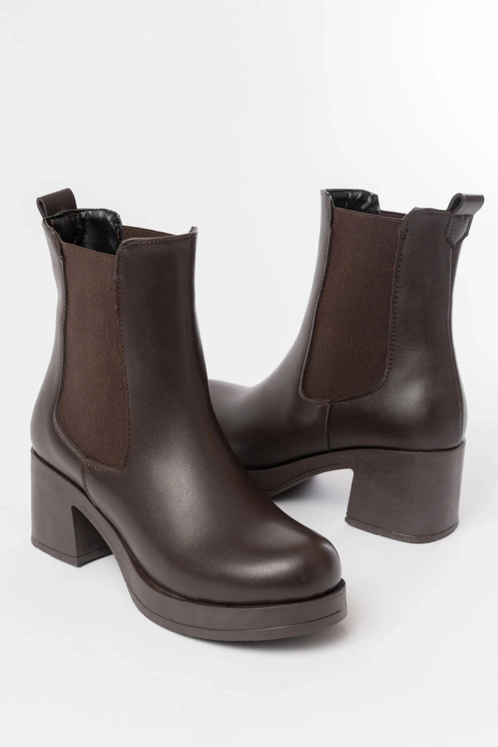 5109-3056 Kahverengi Lastikli Kalın Topuklu Günlük Kadın Bot
