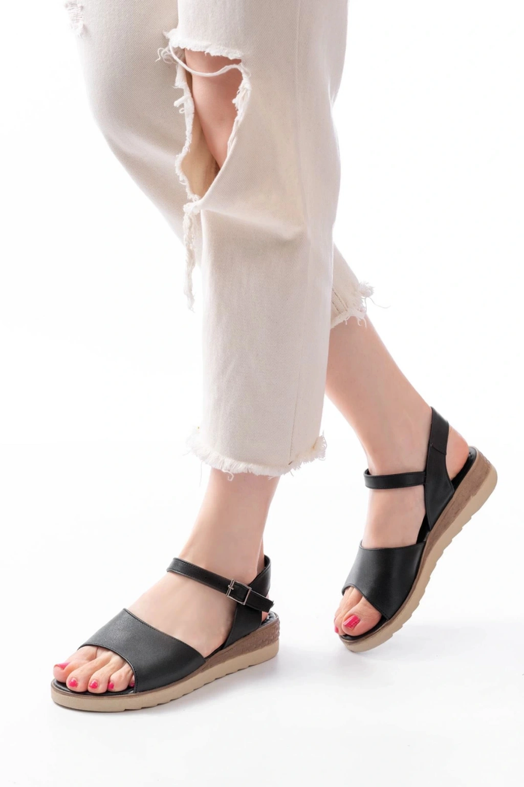 692-500 Siyah Ortopedik Taban Tokalı Kadın Sandalet