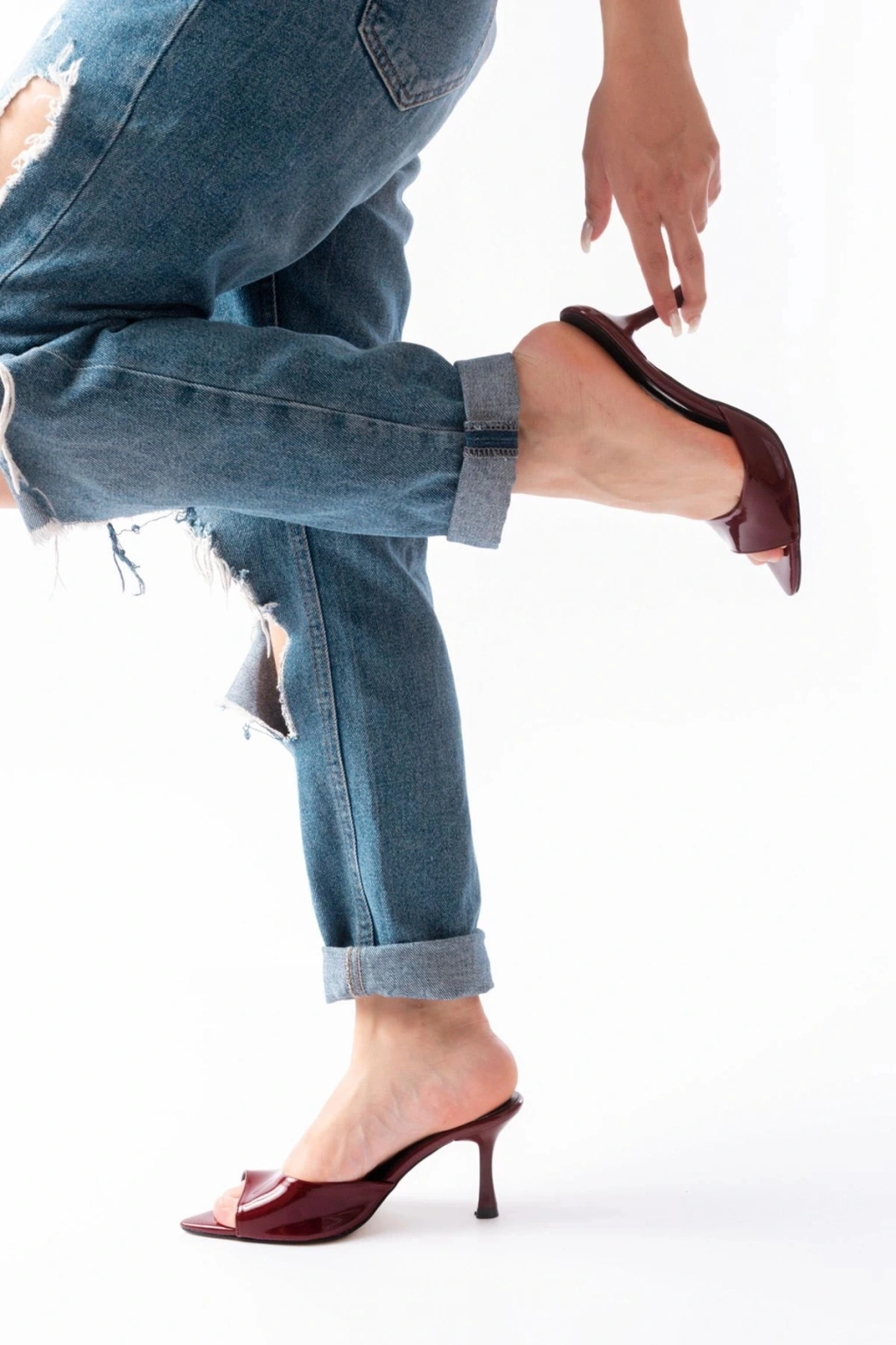 716 Bordo Rugan Sivri Burunlu Topuklu Kadın Terlik