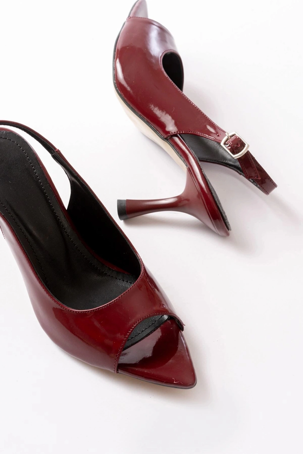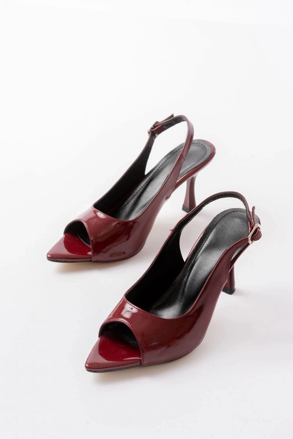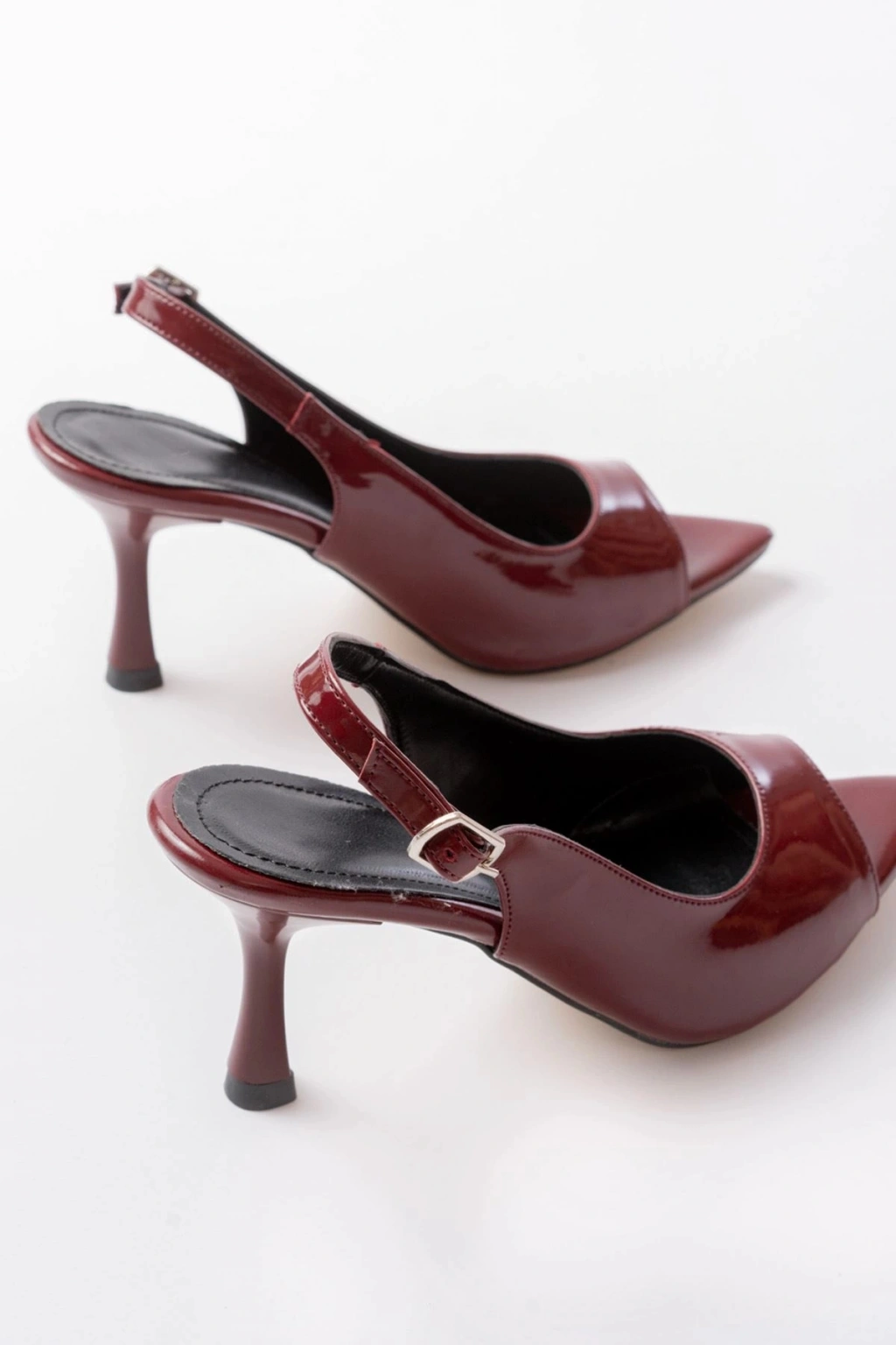 717 Bordo Rugan Sivri Burunlu Topuklu Kadın Sandalet